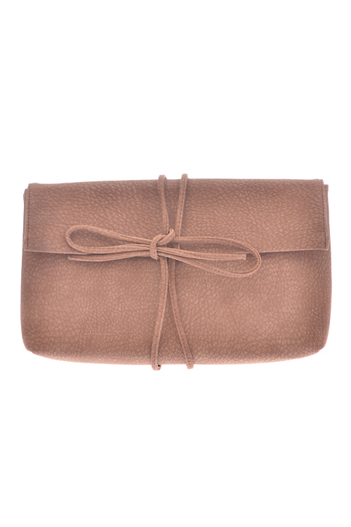 - * Faded Rope Bow Tied Clutch * 12.5W*8H*3D * Polyurethane, mixed metal