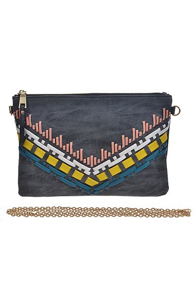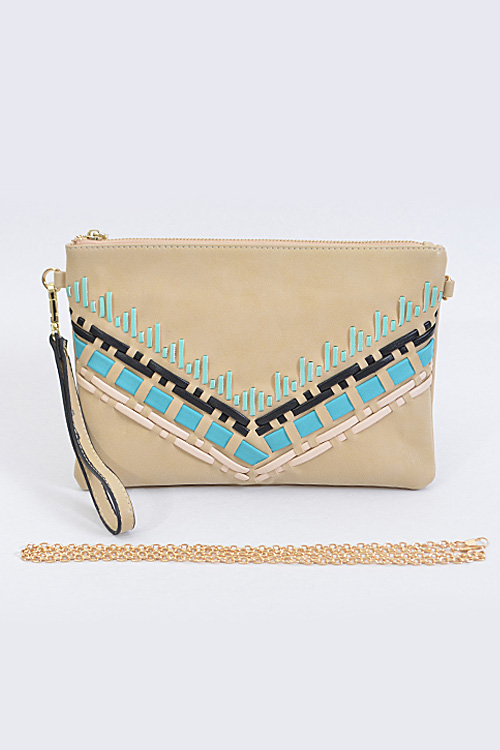• * Aztec Pattern Clutch * 11.25W*7.25H*0.5D * Polyurethane, mixed metal