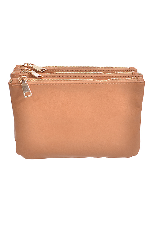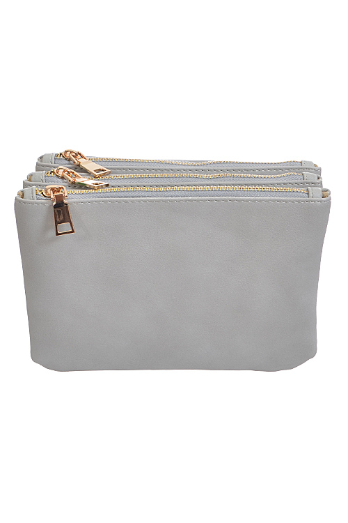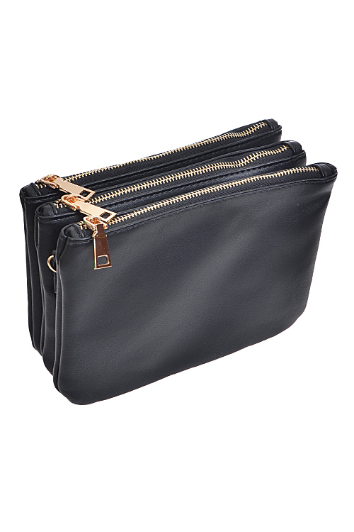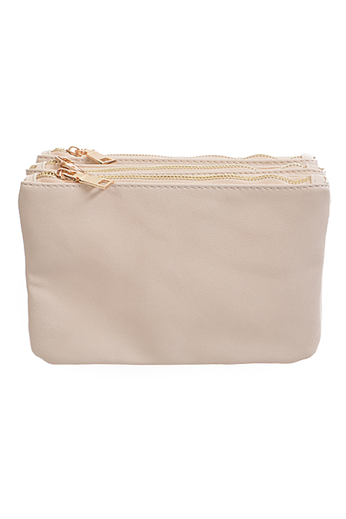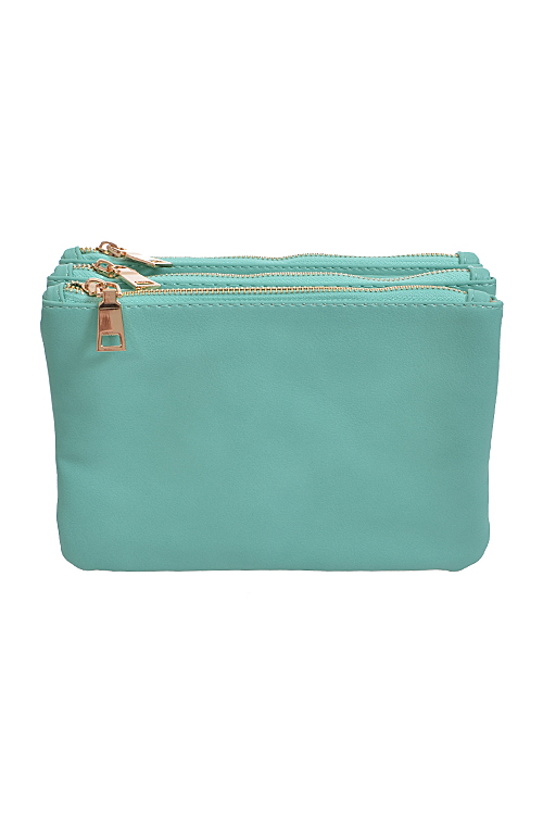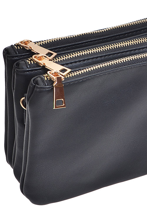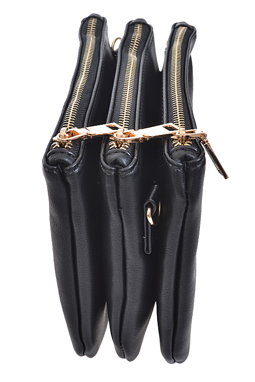 • * Trendy Hand Bag Clutch With 3 Zippers * 8.5W*6H*2.5D * Polyurethane, mixed metal