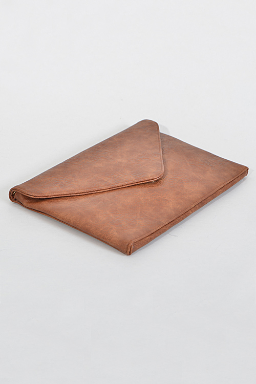 • * Envelope Clutch With Intricate Design * 14W*8.75H * Polyurethane, mixed metal