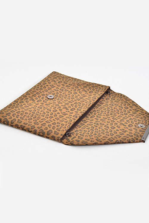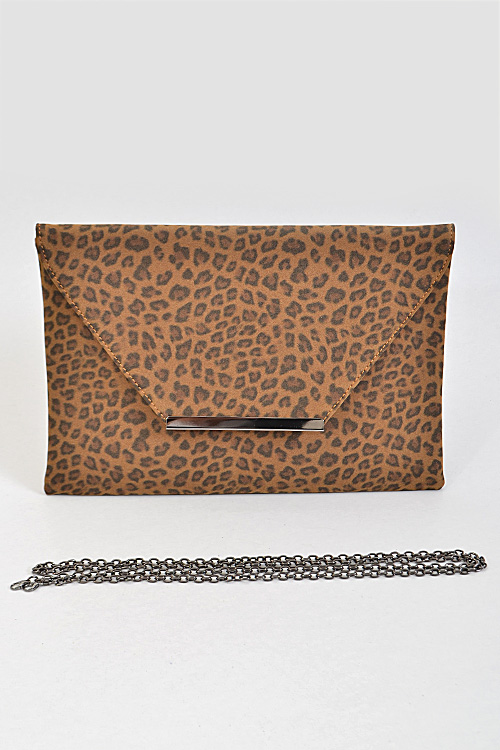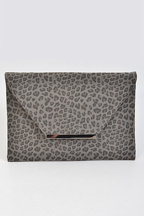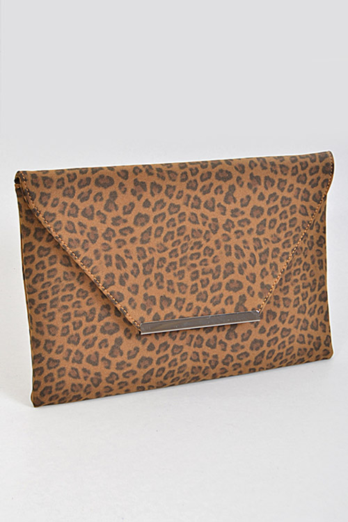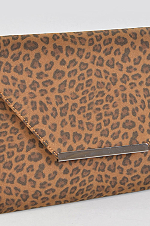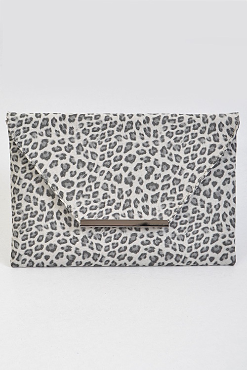 - * Leopard Inspired Hand/Side Clutch * 12W*7.75H * Polyurethane, mixed metal