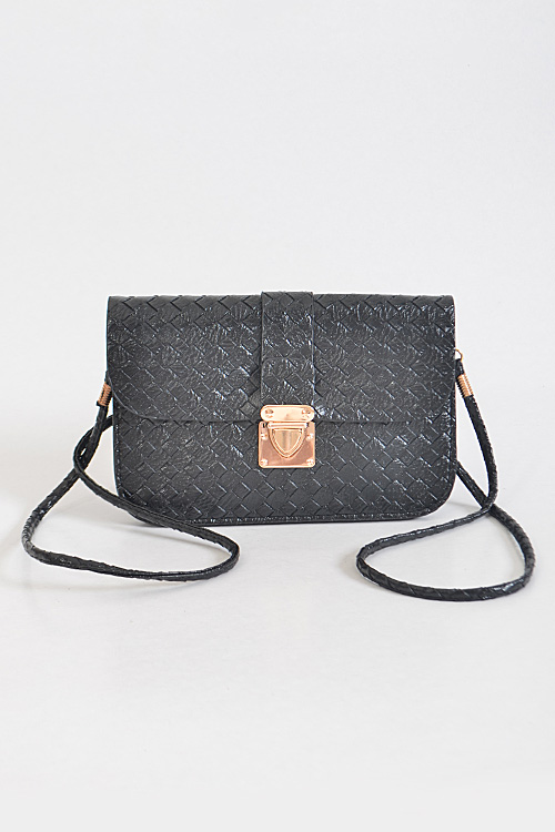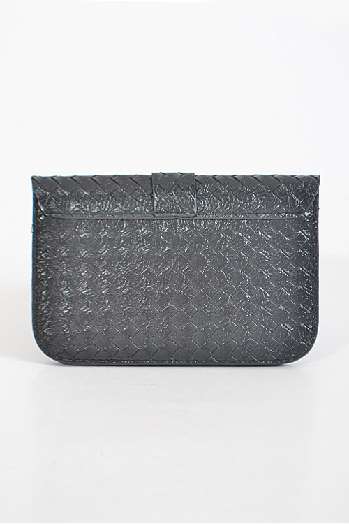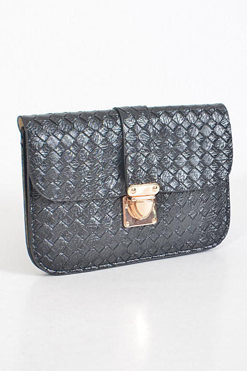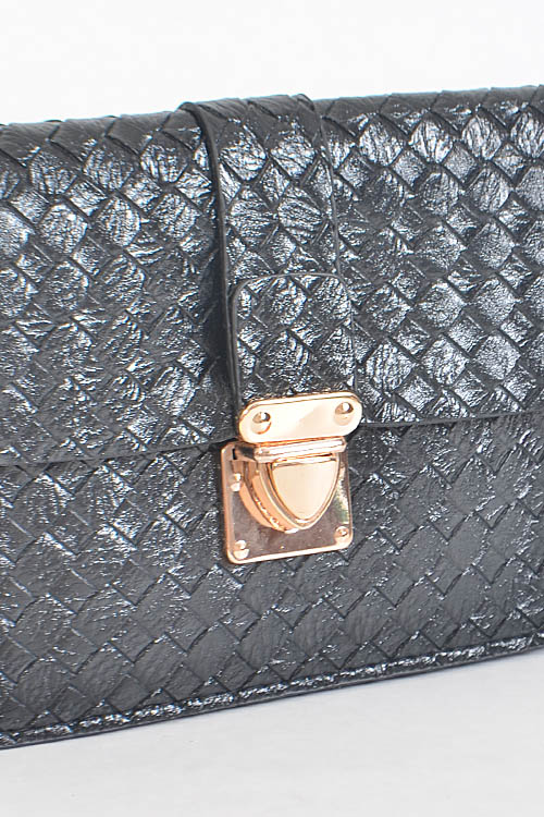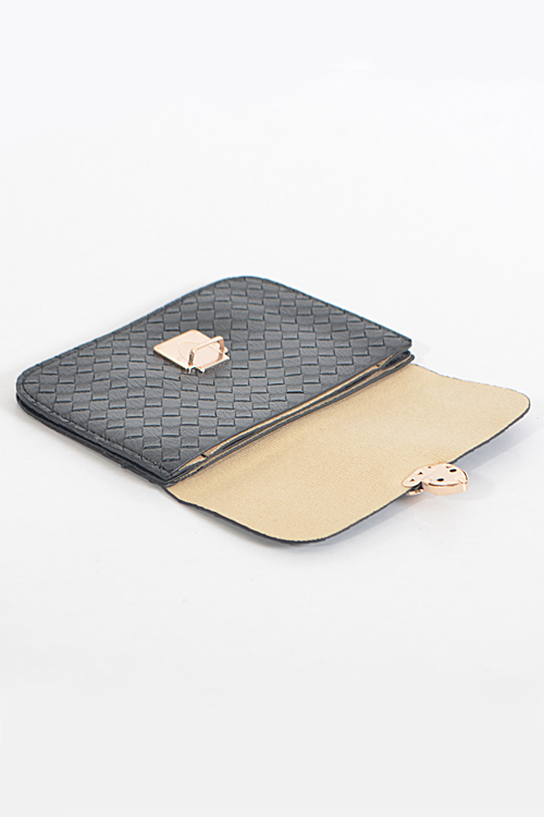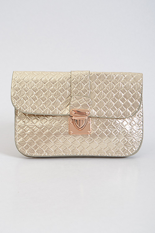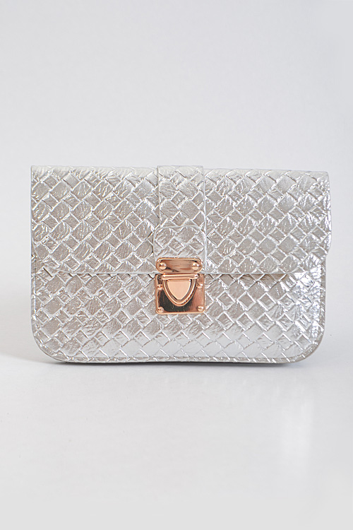 - * Criss Cross Patterned Rectangle Clutch * 8W*5H*0.5D * Polyurethane, mixed metal