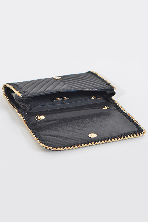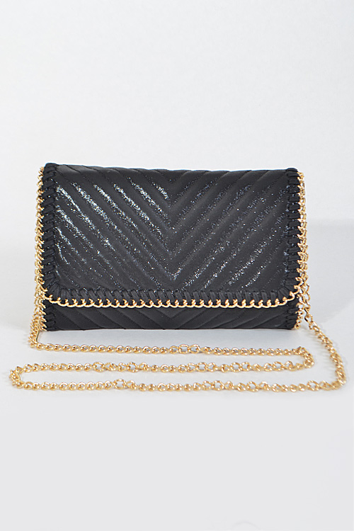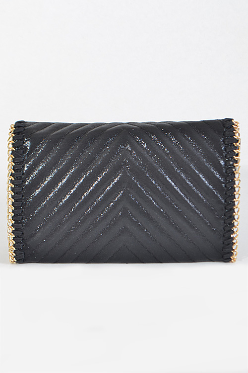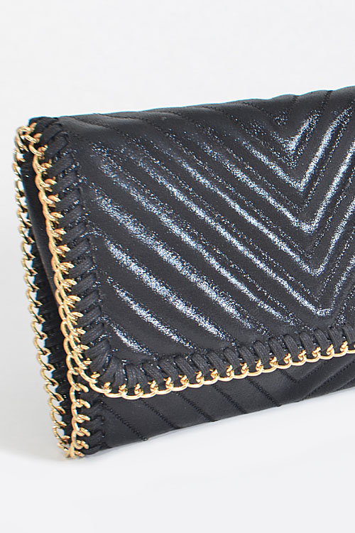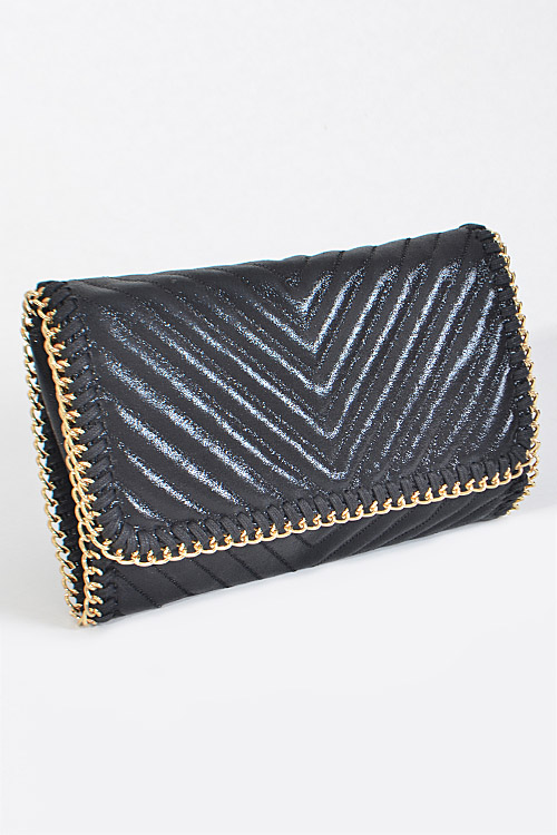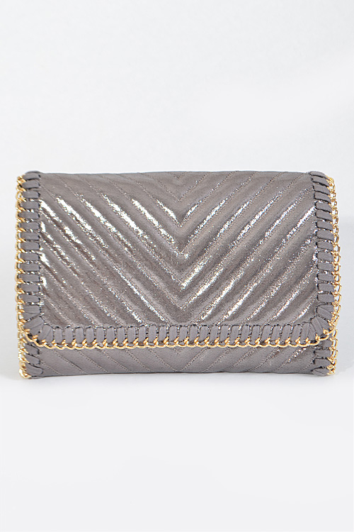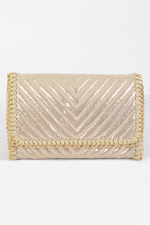 • * Shiny Yet Flashy V Patterned Clutch * 9.5W*6H*1D * Polyurethane,Mixed Metal