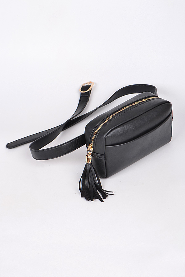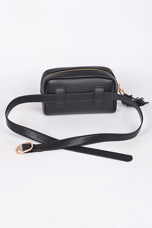 • * Solid Rectangle With Pouch Tassel Fanny Pack