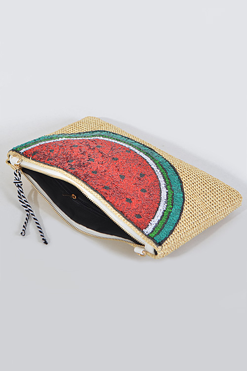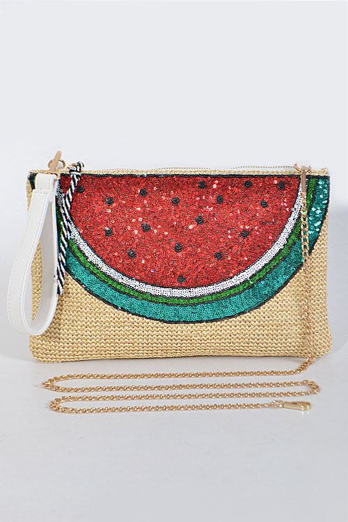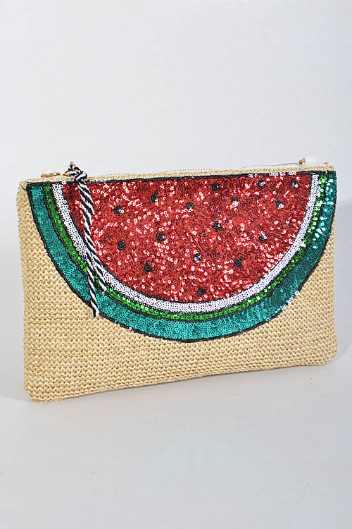 • * Watermelon Slice Flashy Clutch * 12.5W*8H * Straw,Sequins