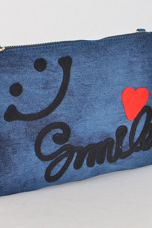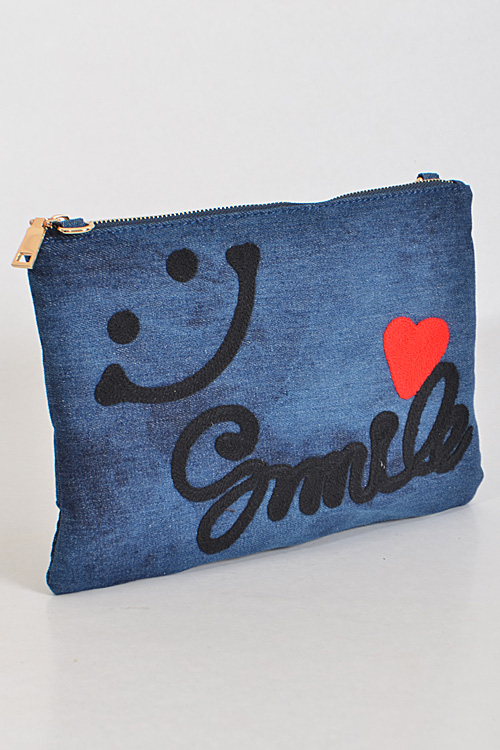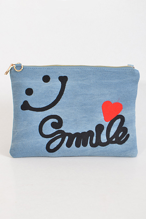 - * Simple Denim Inspired Smile Clutch * 11W*7.75H * Denim