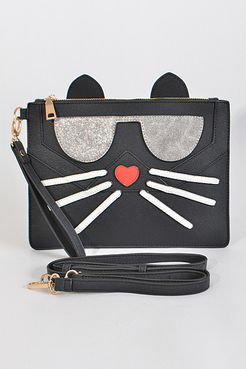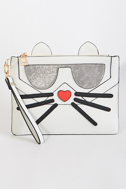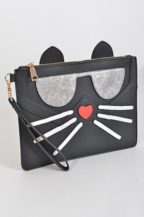 • * Fashion Kitty Clutch * 10.5W*7.75H * Polyurethane, mixed metal