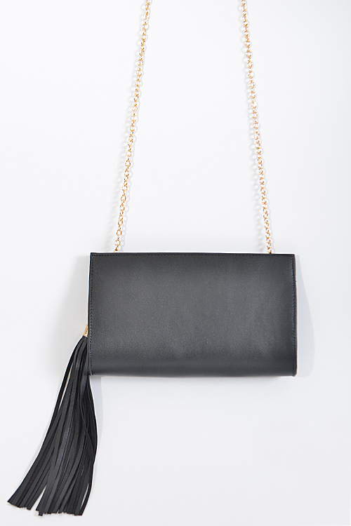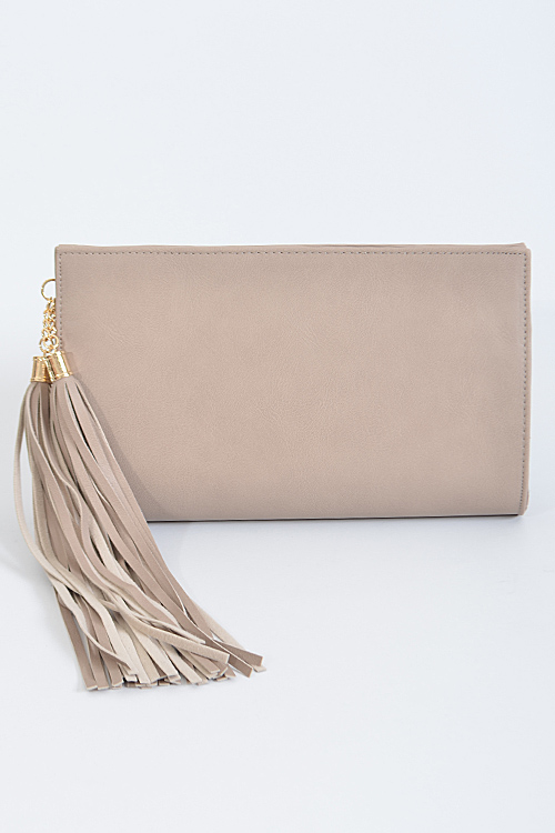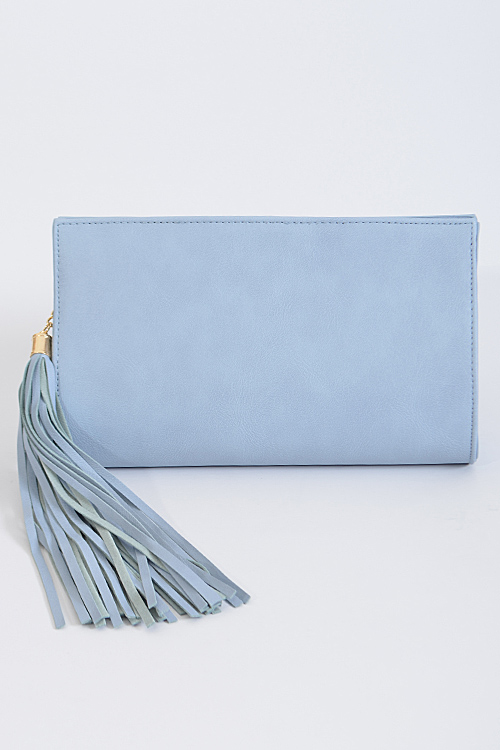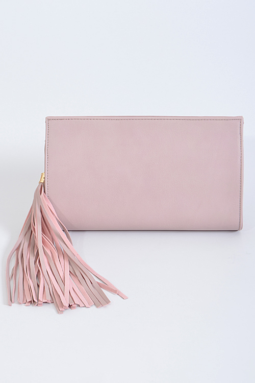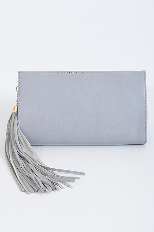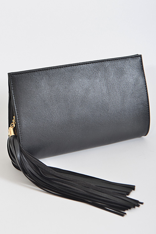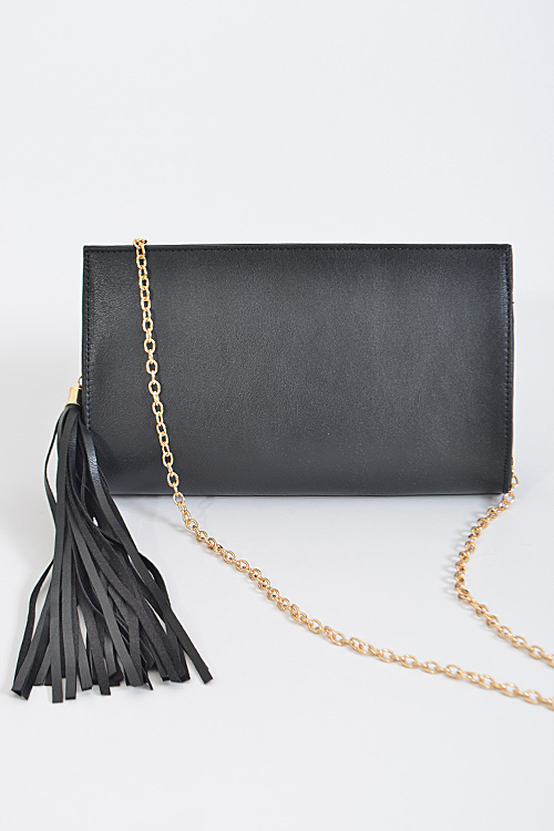 - * Rectangular Shaped Clutch With Long Tassel Details * 10W*6H*2D * Polyurethane,Mixed Metal