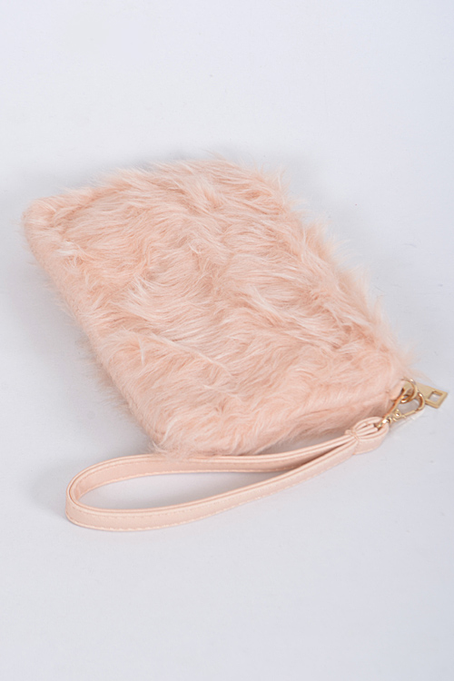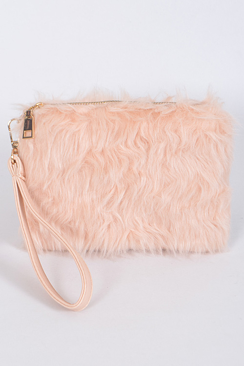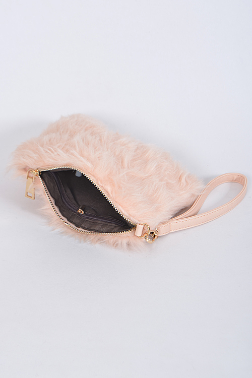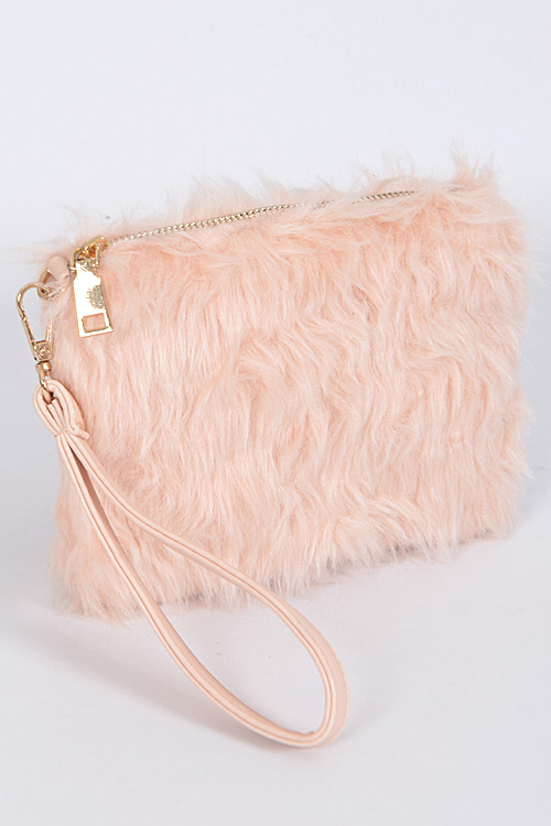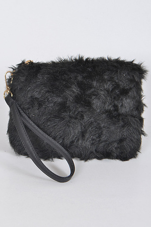 - * Faux Fluff Clutch * 3W*2H*1D * Polyurethane/Faux Fur