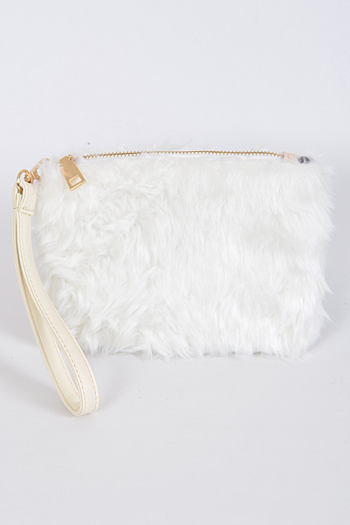• * Faux Fluff Clutch * 3W*2H*1D * Polyurethane/Faux Fur
