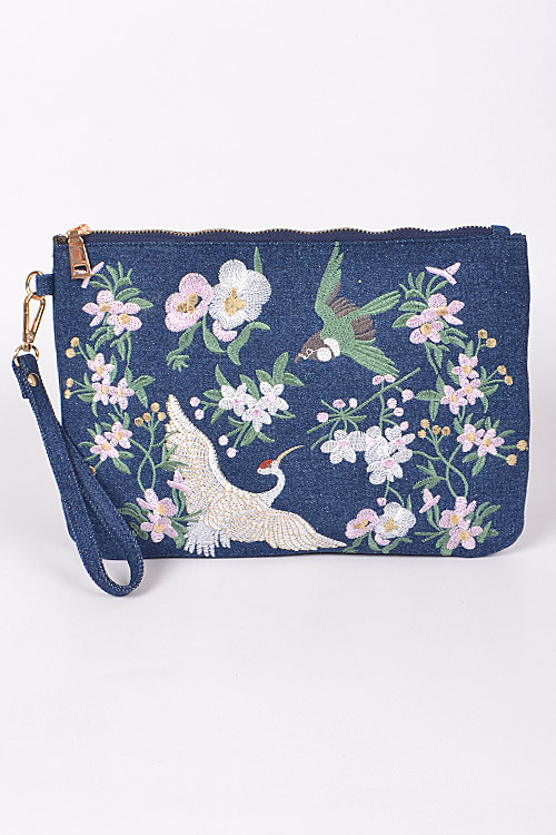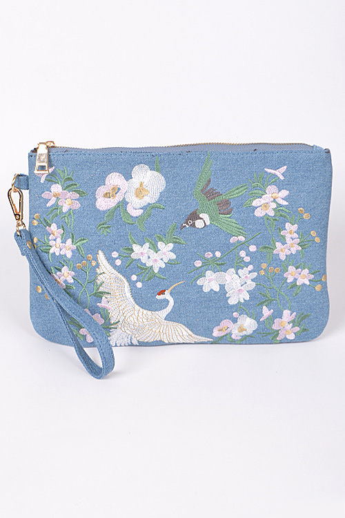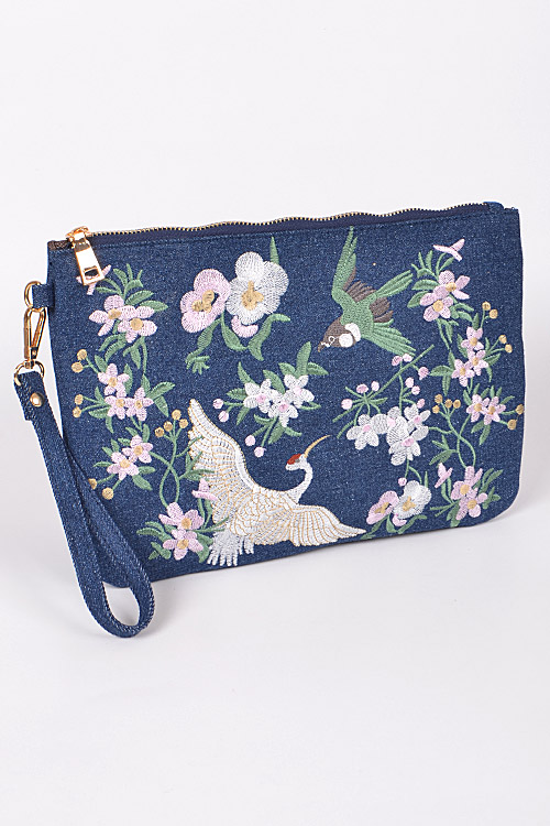 • * Nature Theme Denim Clutch * 11.75W*8H * Denim