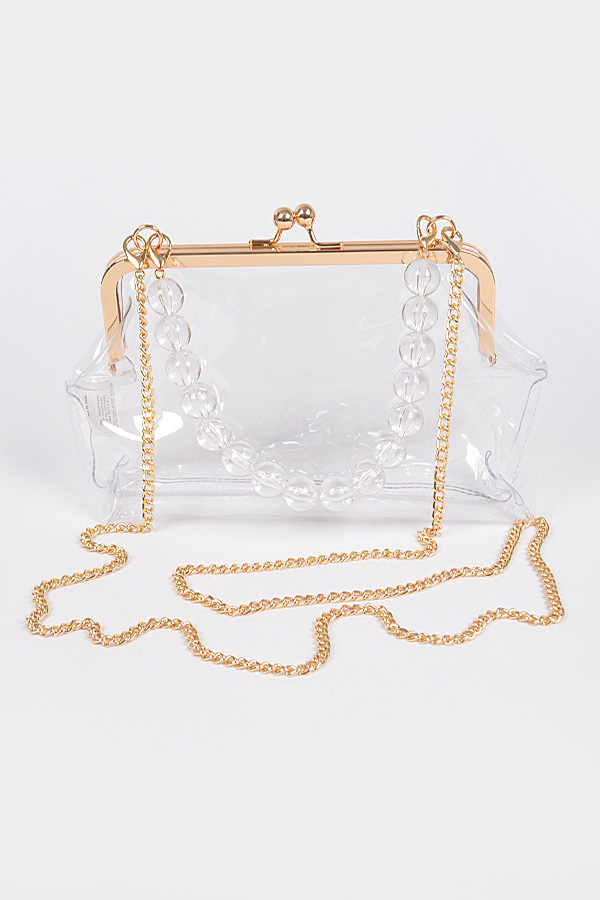 - * Meet the "Vintage Clasp PVC Clutch" – a beautifully designed clear clutch that showcases your essentials while exuding timeless elegance. With its eye-catching gold chain and vintage clasp, this PVC clutch from H&D Accessories is a must-have for fashion-forward individuals who appreciate both style and functionality.