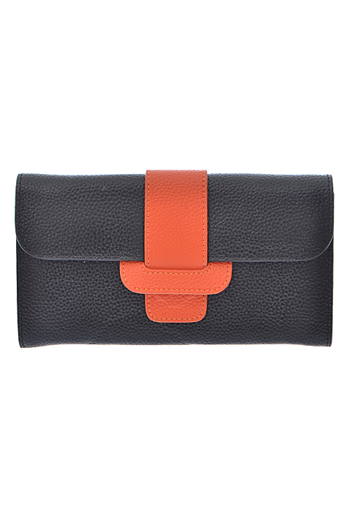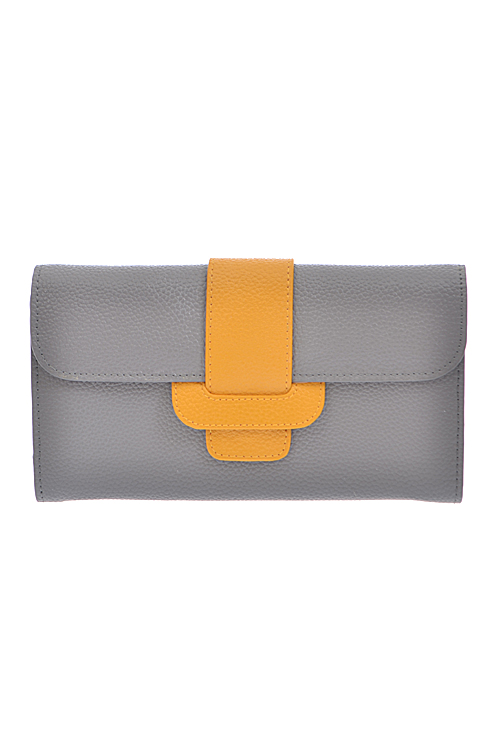 - * Real Leather Two Tone Wallet * 8W*4.5H*0.5D * Polyurethane, mixed metal