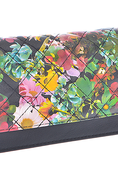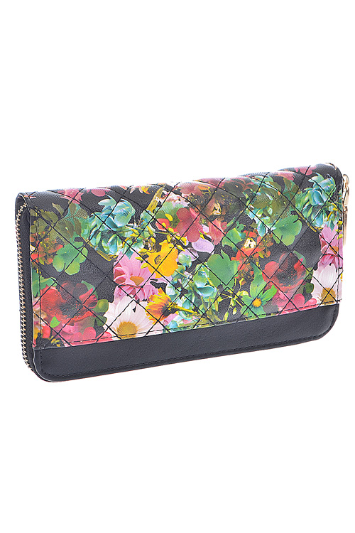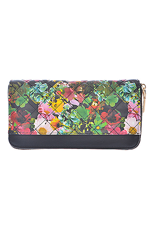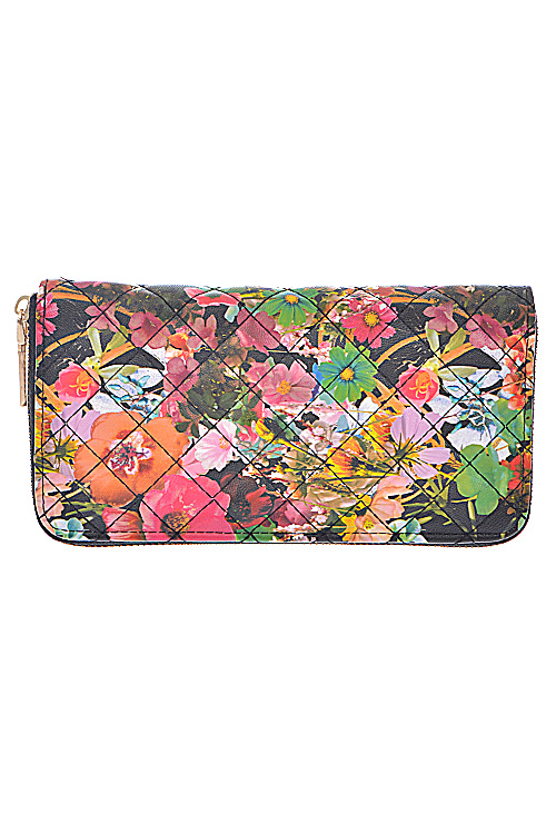 • * Flower Painted Quilt Design Zipper Wallet * 8W*4H*1D * Polyurethane, mixed metal
