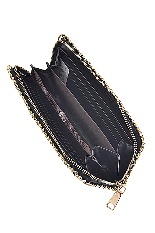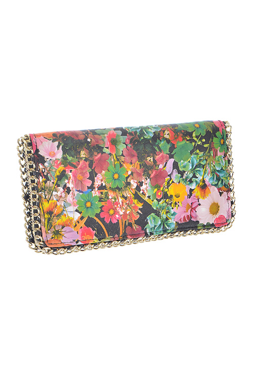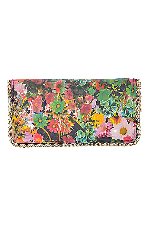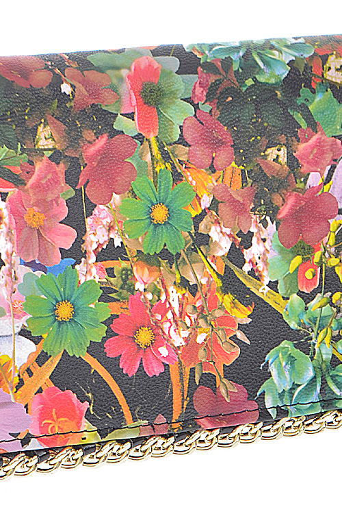 - * Artistic Flower Painted Chain Wrapped Wallet * 8W*4H*1D * Polyurethane, mixed metal