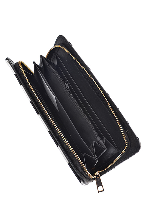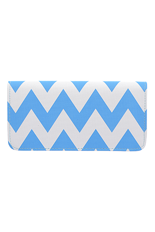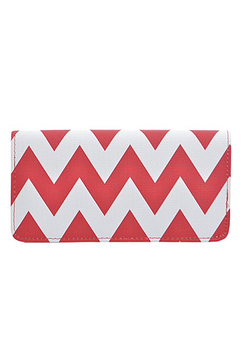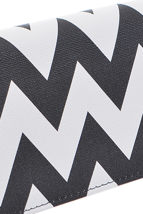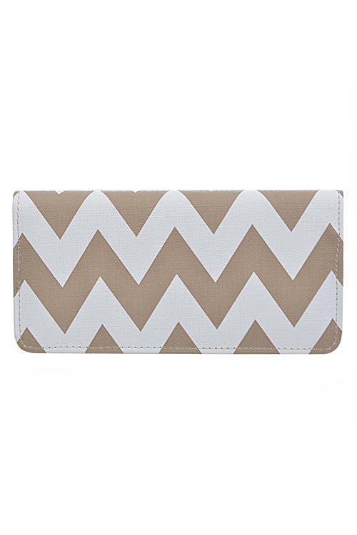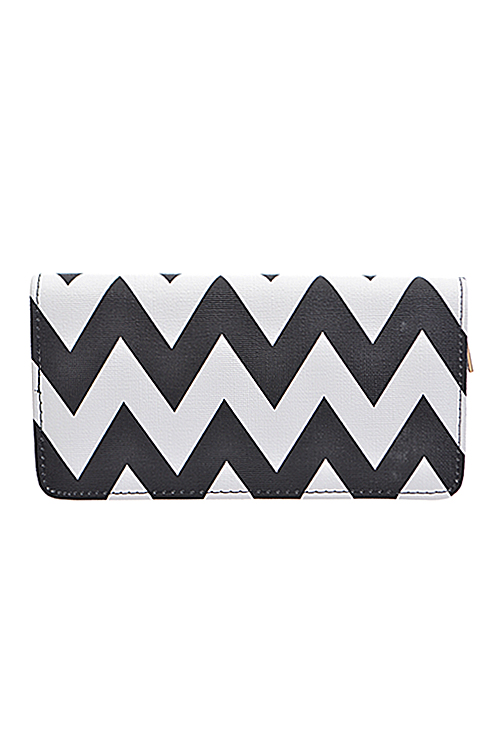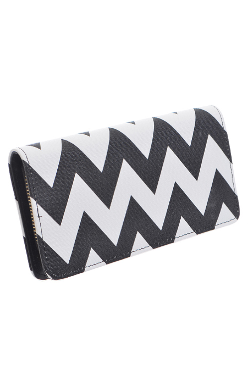 - * Two Tone Chevron Print Zipper Wallet * 8W*4.5H*1D * Polyurethane, mixed metal