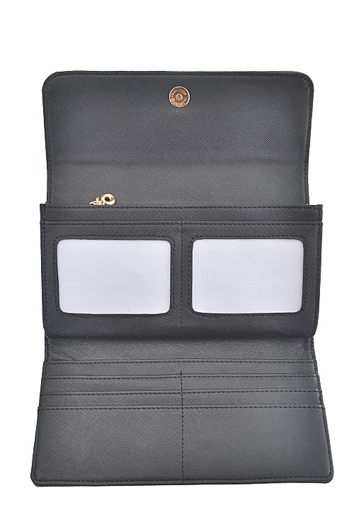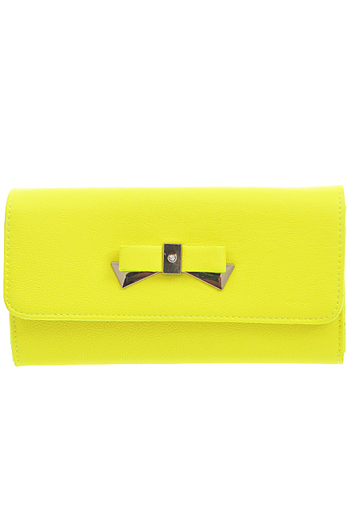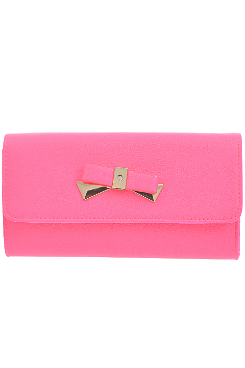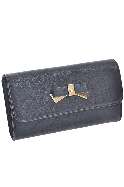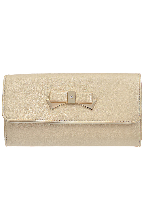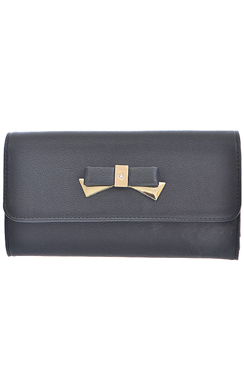 - * Gold Detail Ribbon Flap Wallet * 7.5W*4H*1D * Polyurethane, mixed metal