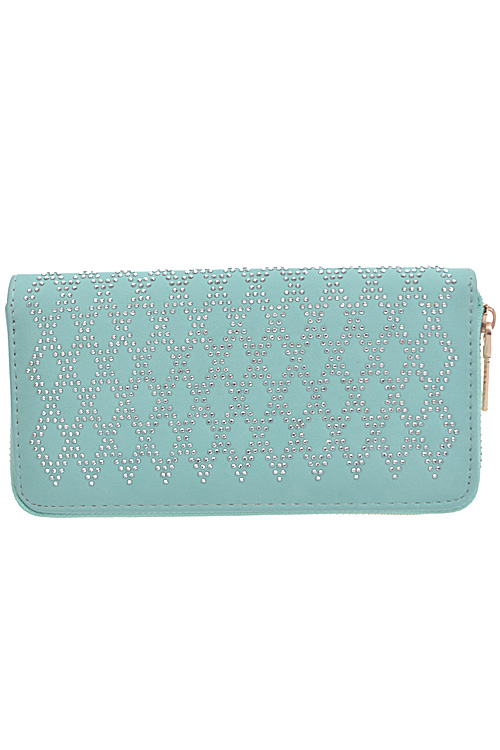 - * Diamond Shape Rhinestone Studded Wallet * 8W*4H*1D * Polyurethane
