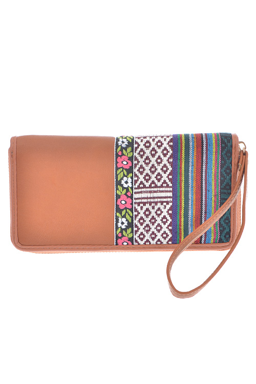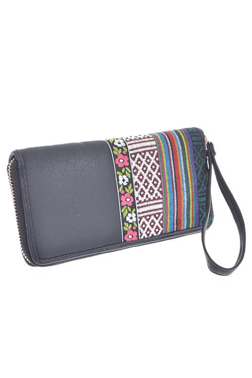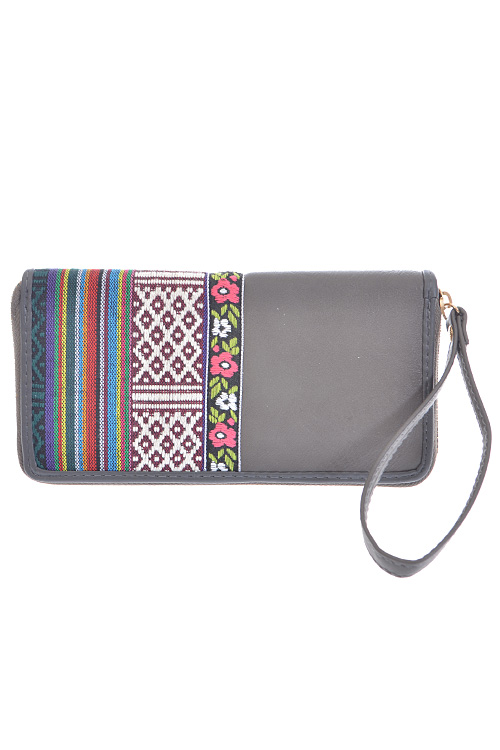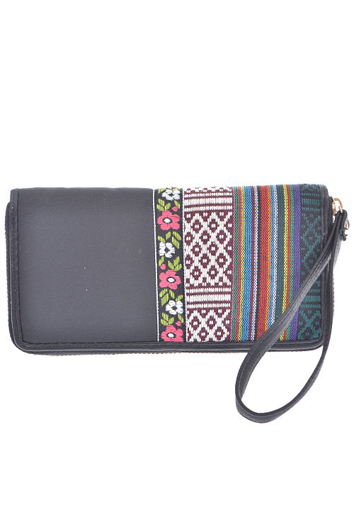 • * Half Pattern Design Striped Zipper Wallet * 8W*4H*1D * Polyurethane, mixed metal