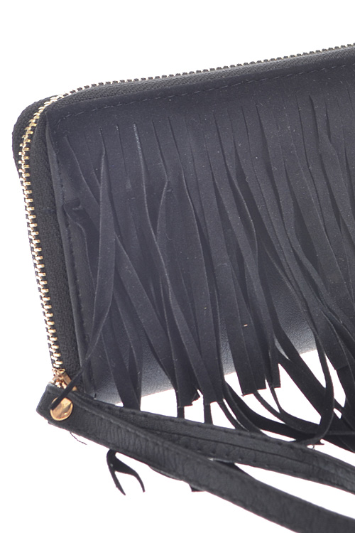• * One Side Fringe Layered Wallet * 8W*4H*1D * Polyurethane