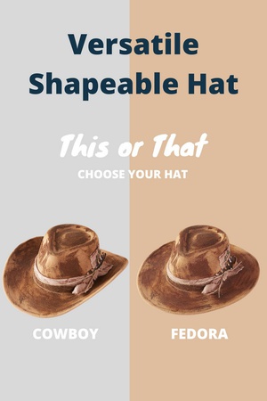 Vintage Versatile Shapeable Cowgirl & Fedora Hat With Distressed Fabric & Suede Band