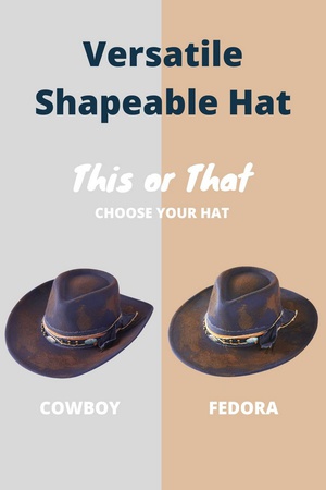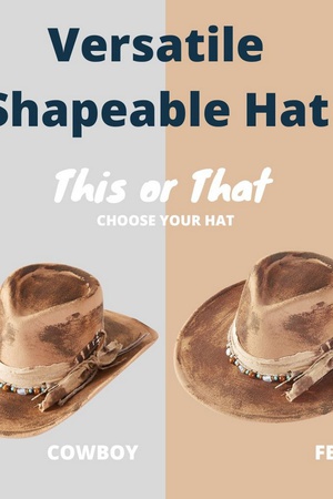 Vintage Versatile Shapeable Cowgirl & Fedora Hat With Distressed Fabric Band