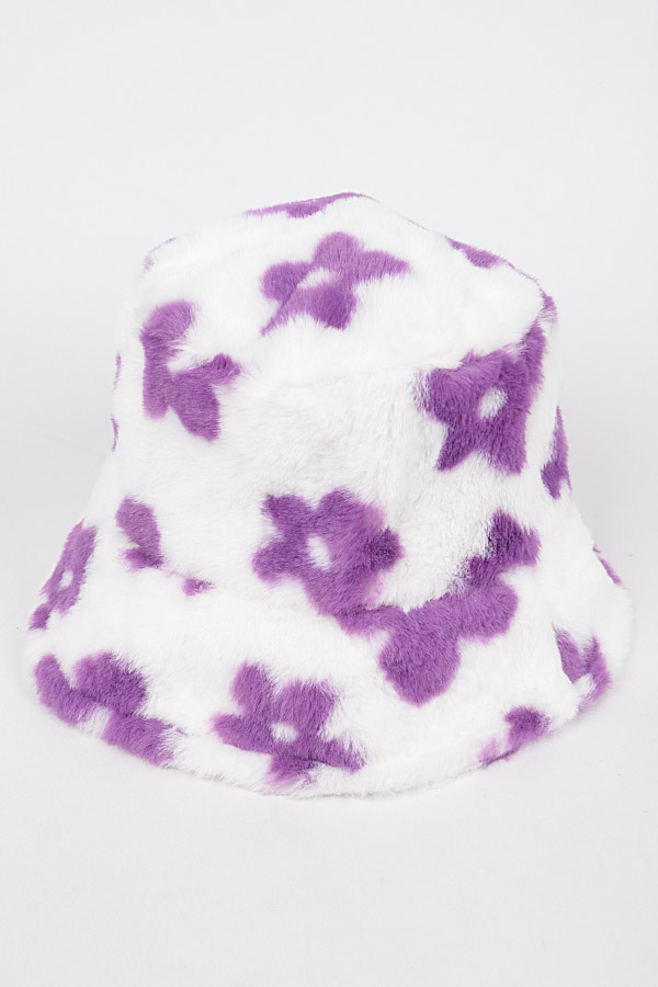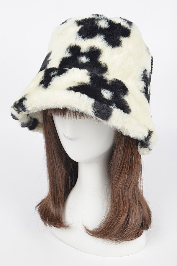 - * Faux Fur Printed Bucket Hat