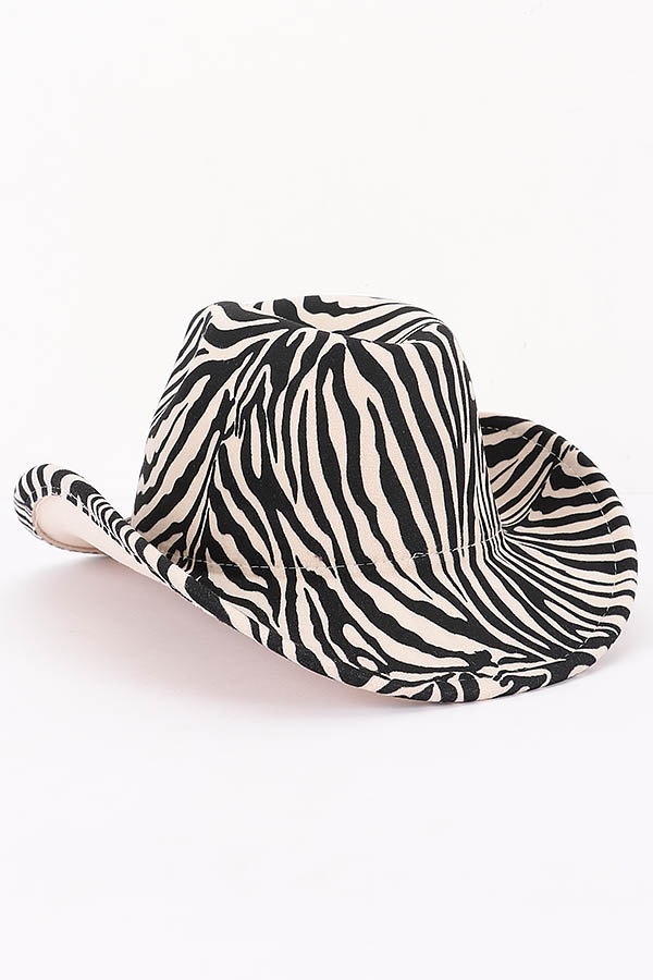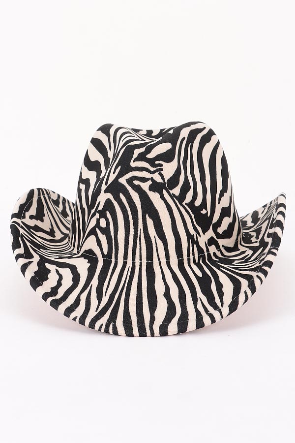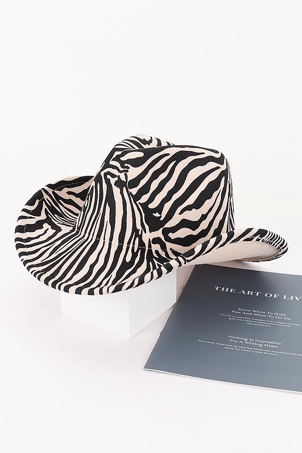 - * This Faux Wool Zebra Print Cowboy Hat from H&D Accessories features a bold zebra print design with a classic cowboy hat shape. It has a trendy and eye - catching appearance, giving off a fashionable and statement - making vibe.Ideal for complementing outfits at animal - themed parties, western - themed events, or costume parties, adding a unique and stylish element.