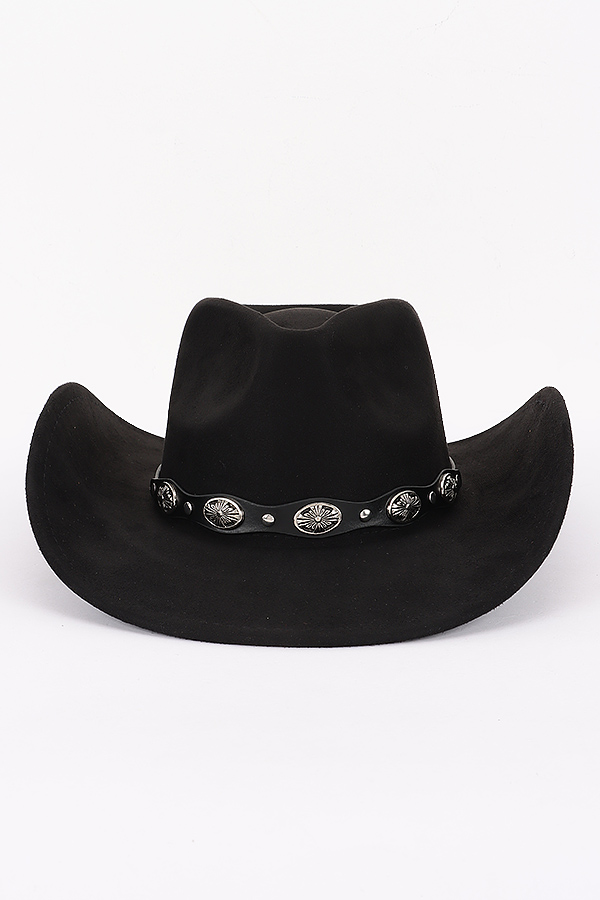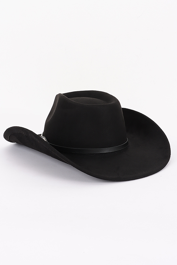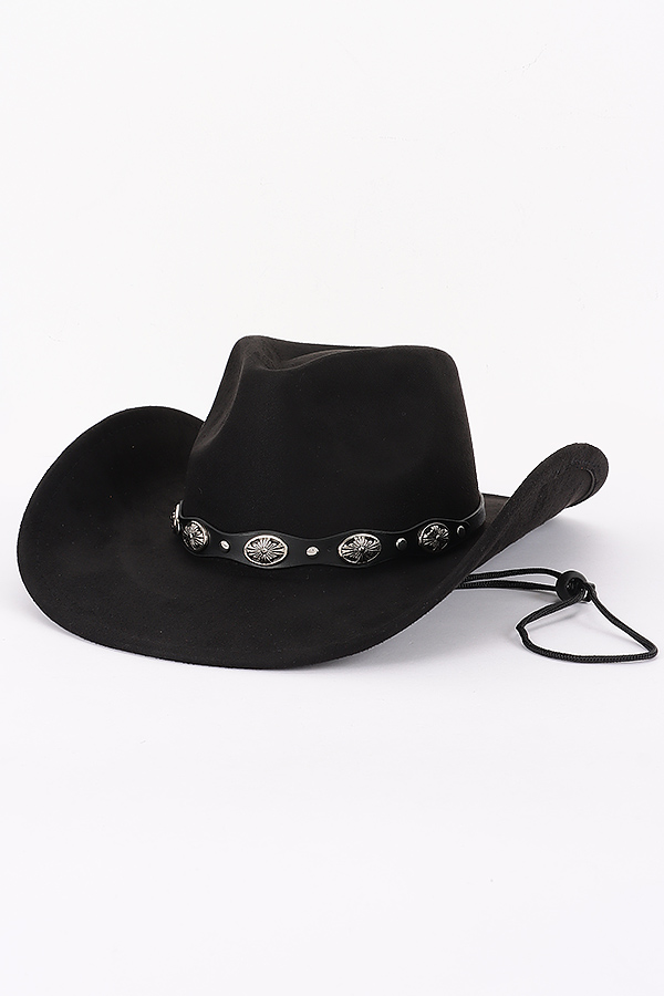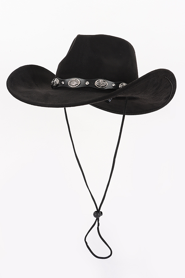 - * This Faux Wool Cowboy Hat from H&D Accessories features a classic cowboy hat shape with a decorative band adorned with metal - like elements. It also comes with a chin strap for a secure fit. The hat has a soft, faux wool texture, giving it a cozy and stylish appearance.