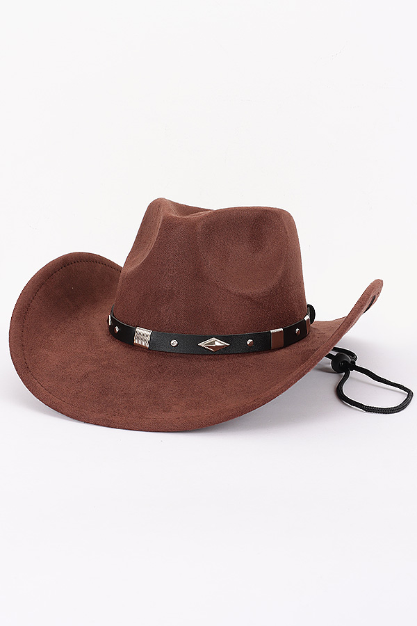 - * This Western Cowboy Hat from H&D Accessories features a classic cowboy hat silhouette with a decorative band and a chin strap for a secure fit. The hat has a structured design, giving it an authentic western appearance.