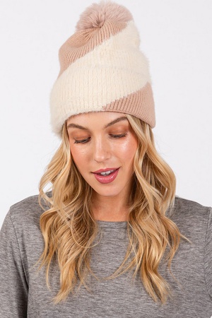 Fuzzy Detailed Fleece Pom Pom Beanie
