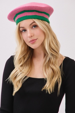 Plaid Pattern Fur Mixed Fleeced Pom Pom Beanie