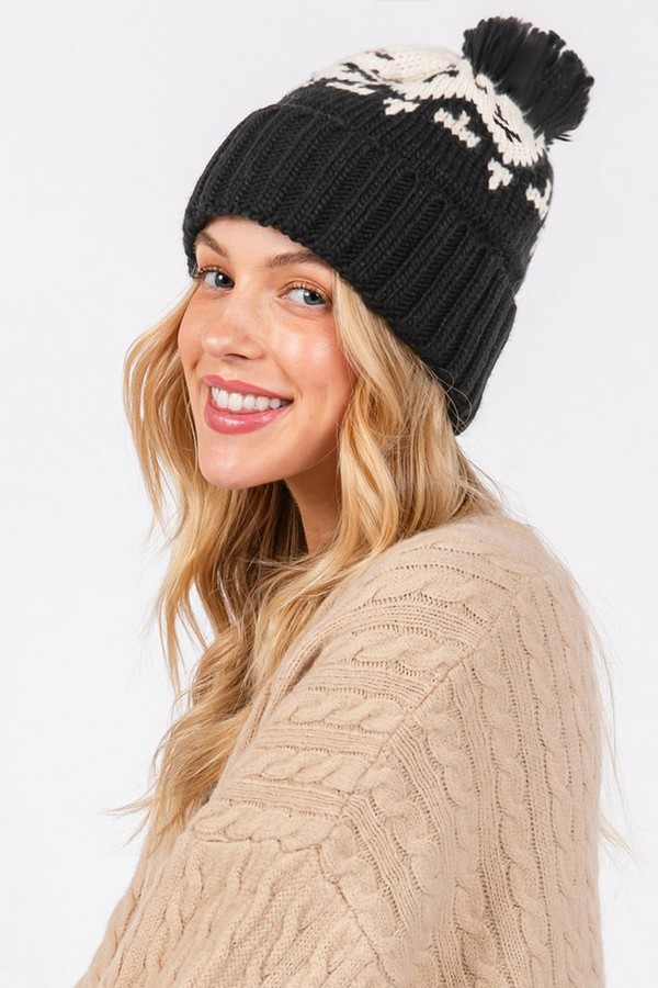 - * Aztec Pattern Pom Pom Beanie