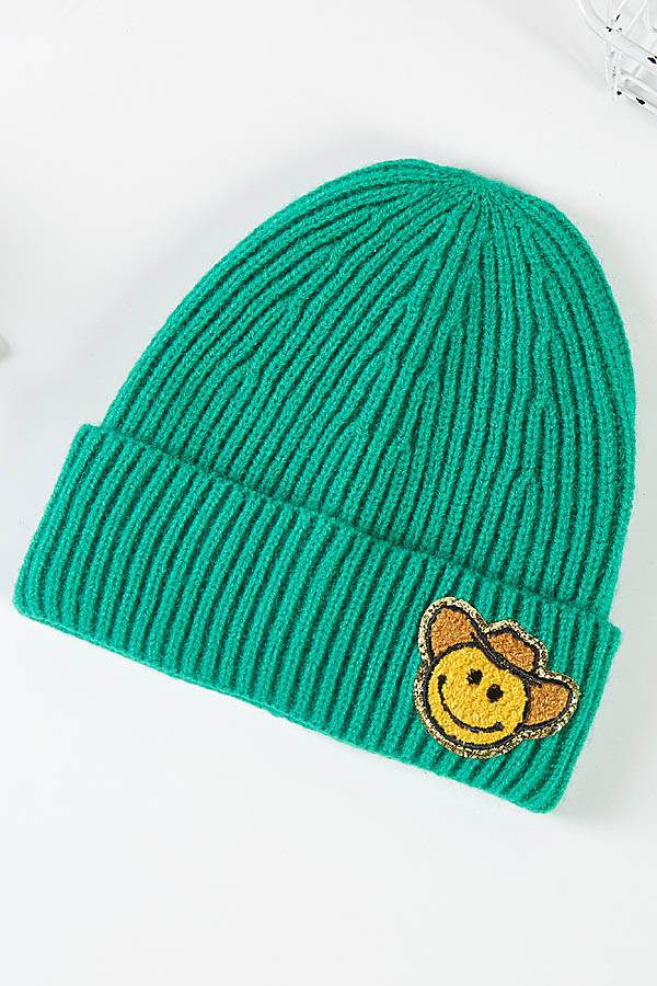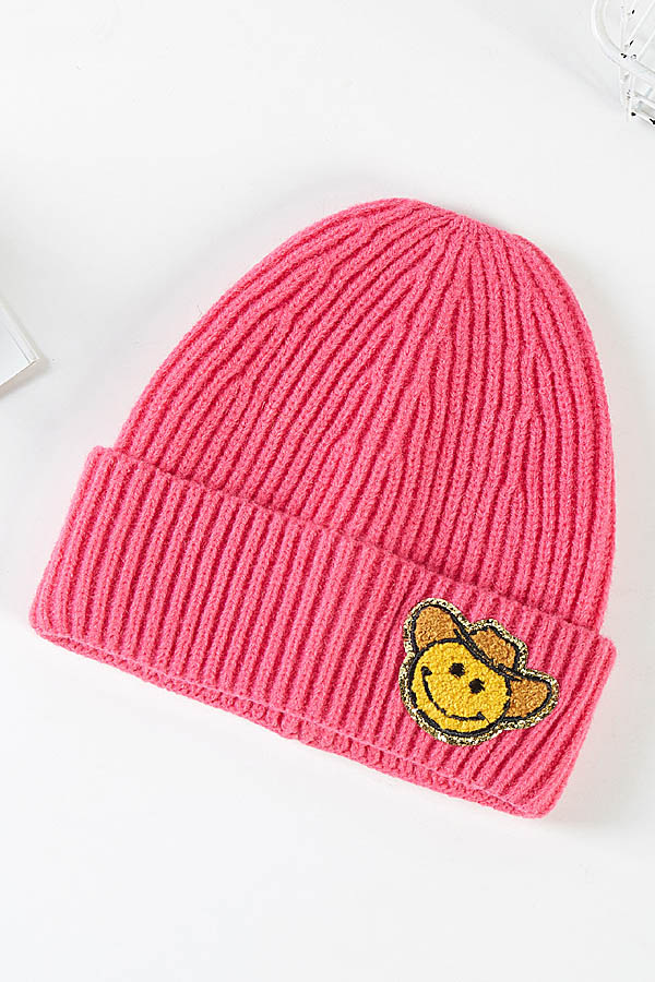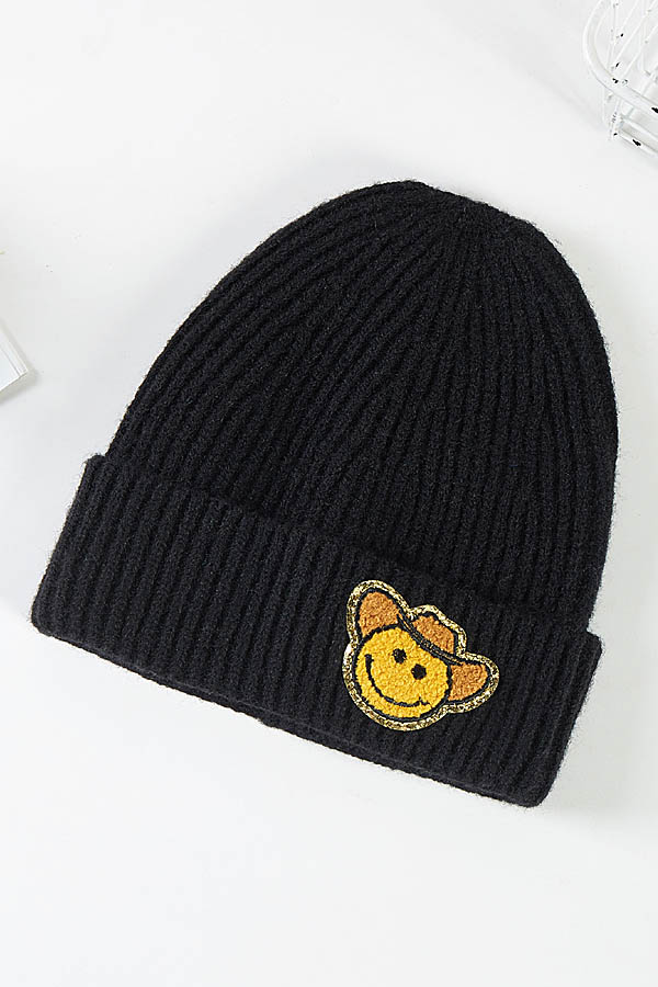 - * COWBOY SMILE PATCH KNITTED BEANIE