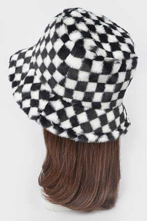 Plaid Fur Bucket Hat