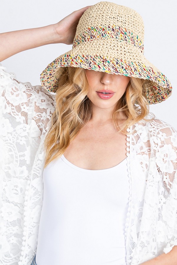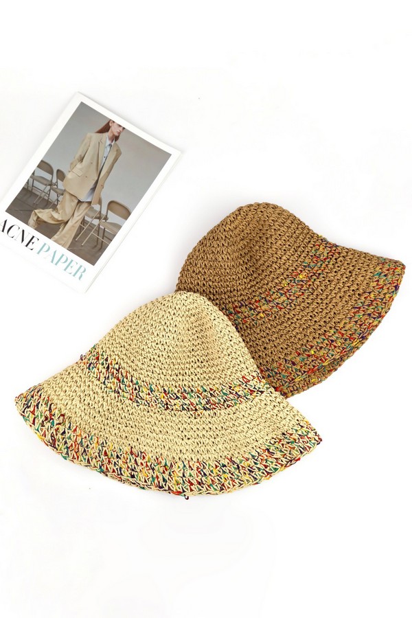 - * MULTI COLOR MIXED STRAW BUCKET HAT.