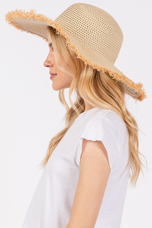 FRAYED EDGE FLOPPY STRAW HAT.