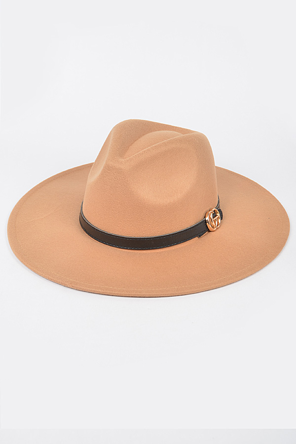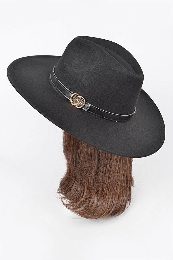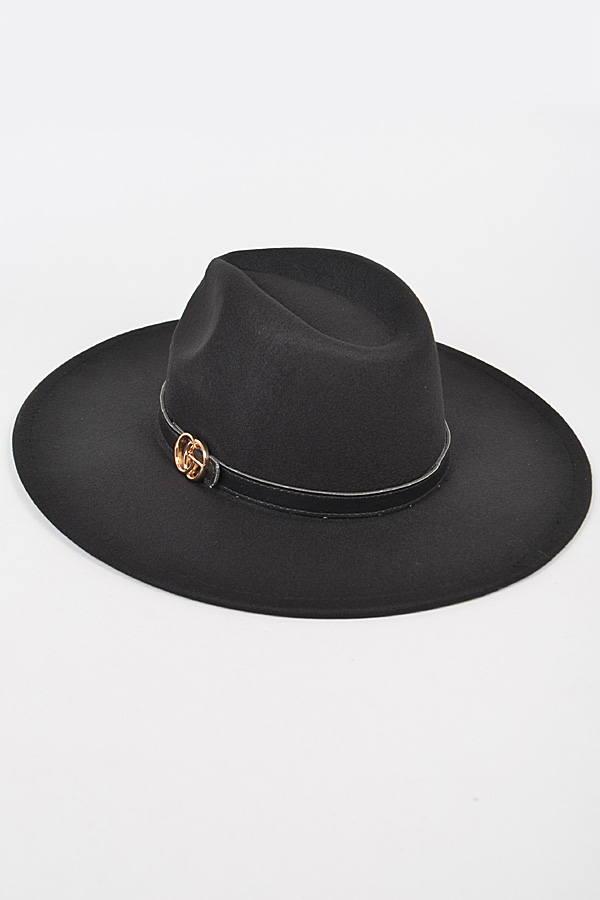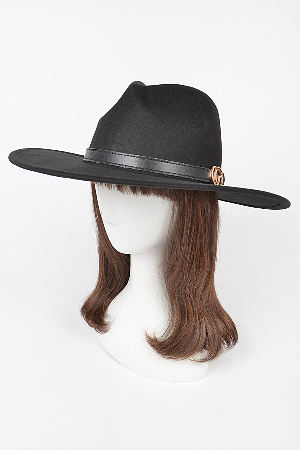 - * Faux Wool Trimed Fedora Hat