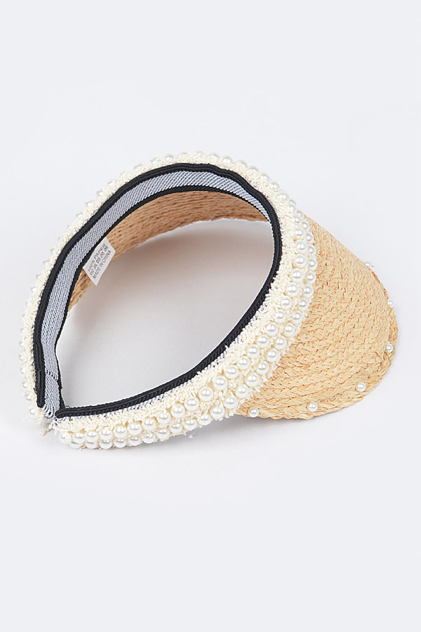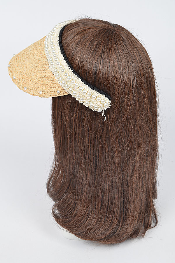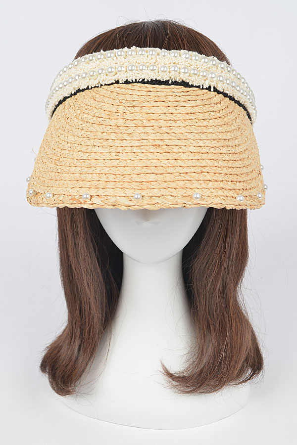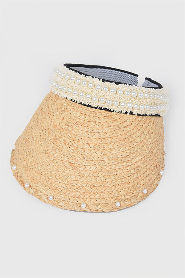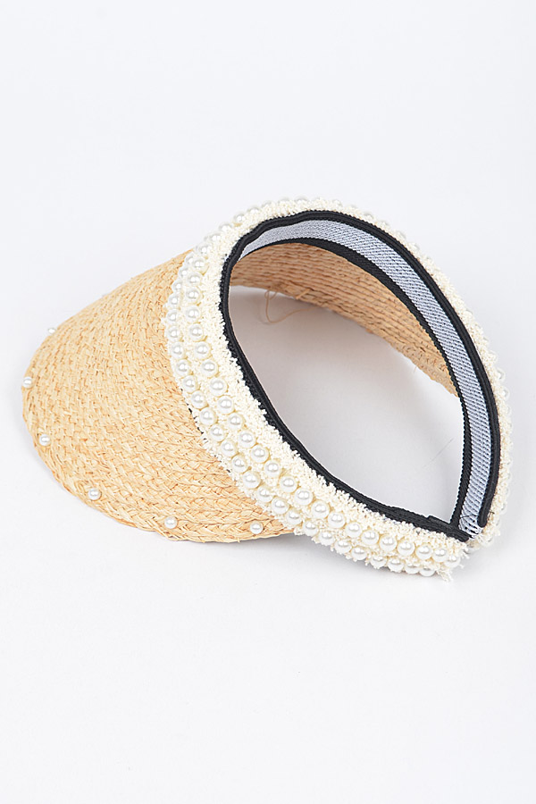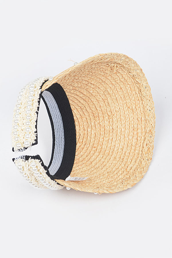 • * Natural Straw Visor W/Pearl