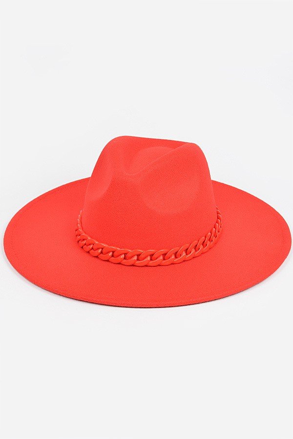 - * Faux Wool Wide Brim Fedora Hat W/Acrylic Chain
