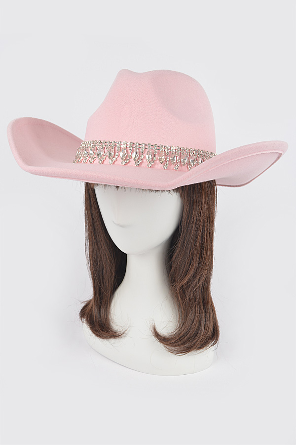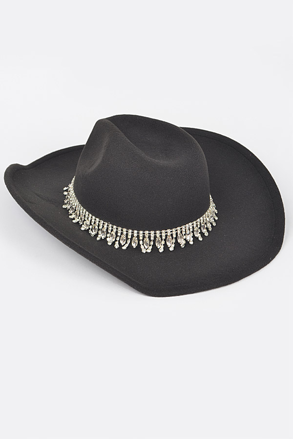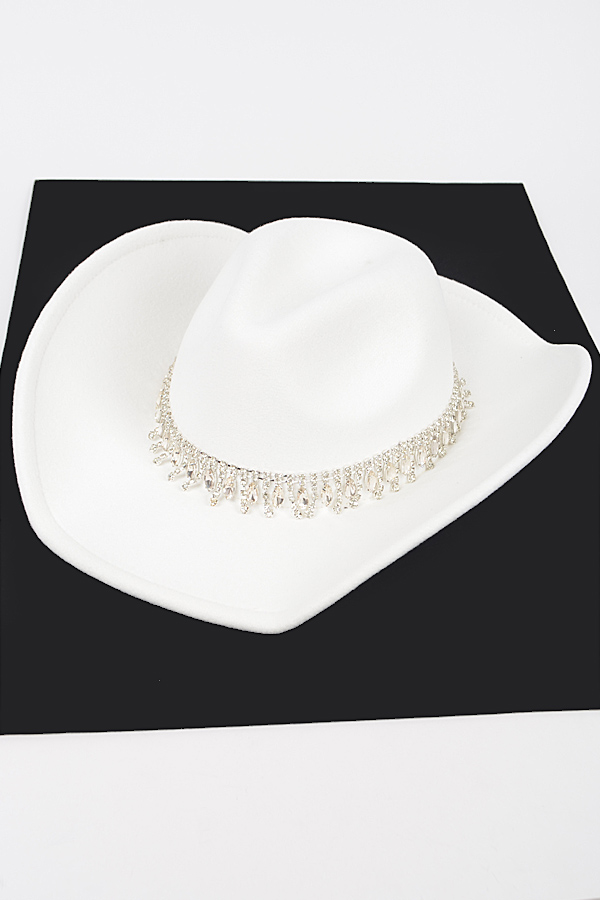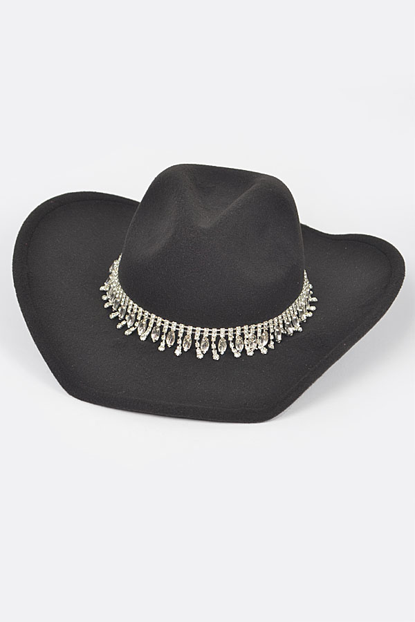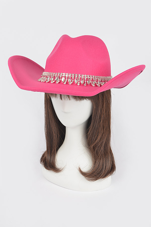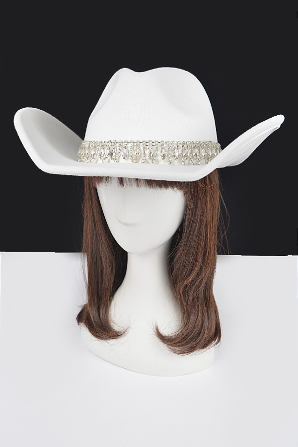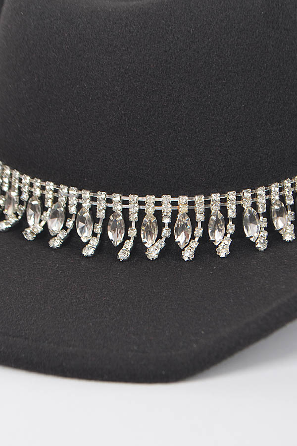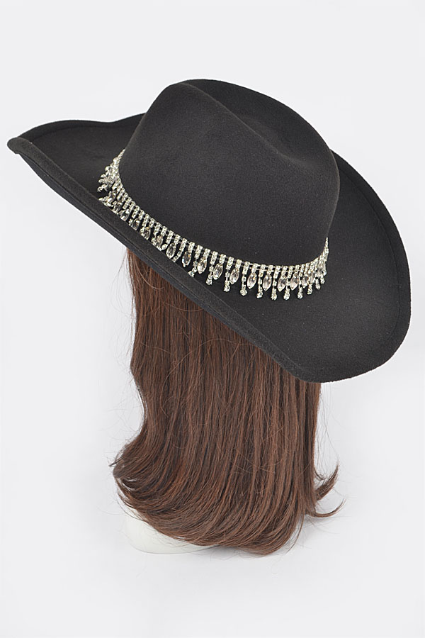 - * Fringe Rhinestone Faux Wool Cowboy Hat