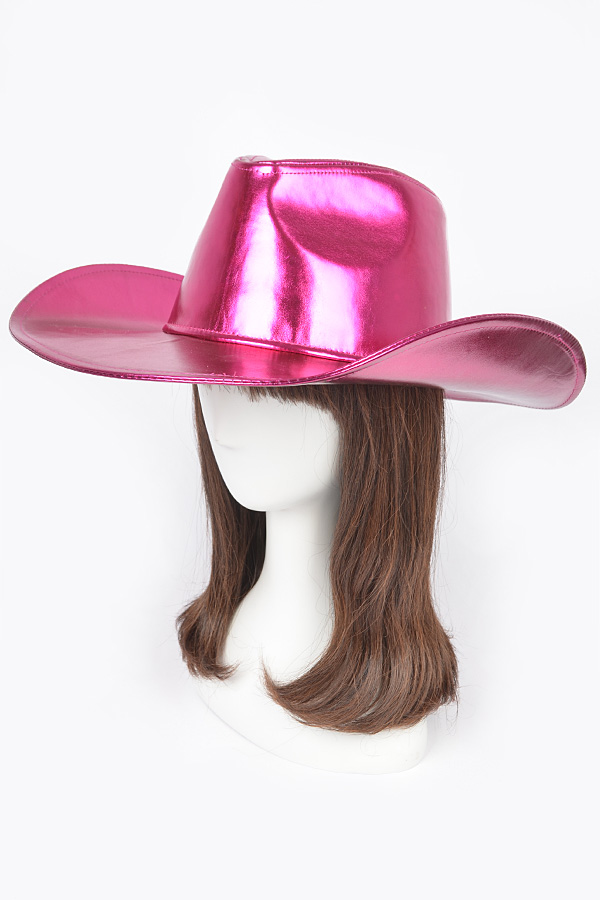 - * This Metallic Faux Leather Cowboy Hat from H&D Accessories is a stylish and eye - catching accessory. Crafted from metallic - finished faux leather, it features the classic cowboy hat silhouette with a wide brim and a tall crown, combining a Western - inspired look with a modern, edgy twist.