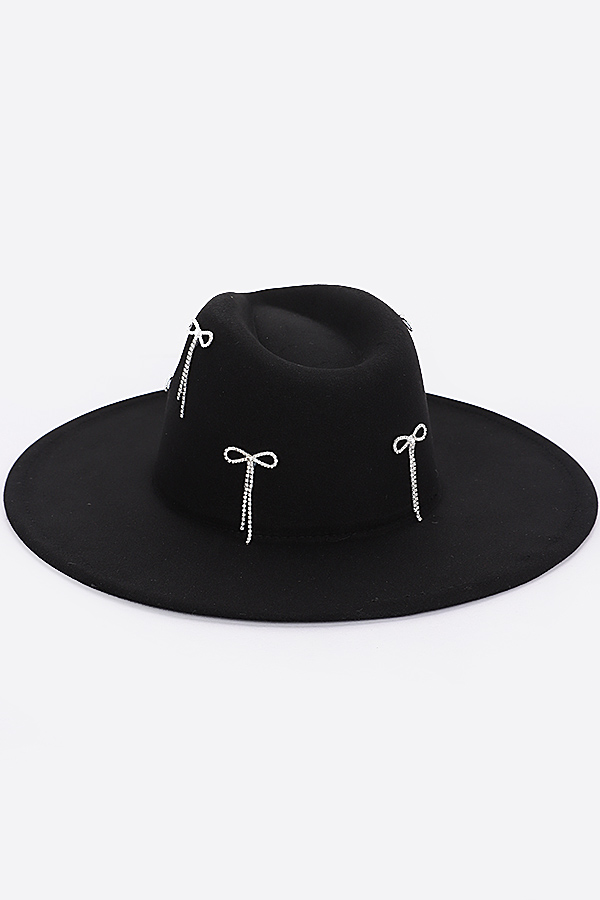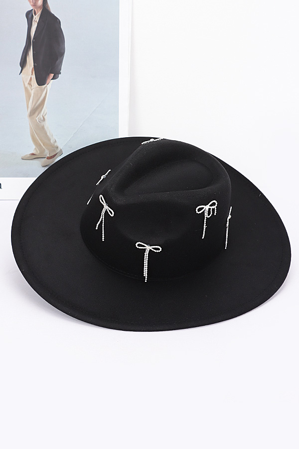 - * Discover the "Faux Wool Rhinestone Ribbon Hat" – where classic design meets modern charm. Crafted from luxurious faux wool, this hat is adorned with shimmering rhinestone bows that elevate your look. Whether you're dressing up for a special event or adding flair to your everyday outfit, this hat is the perfect finishing touch.