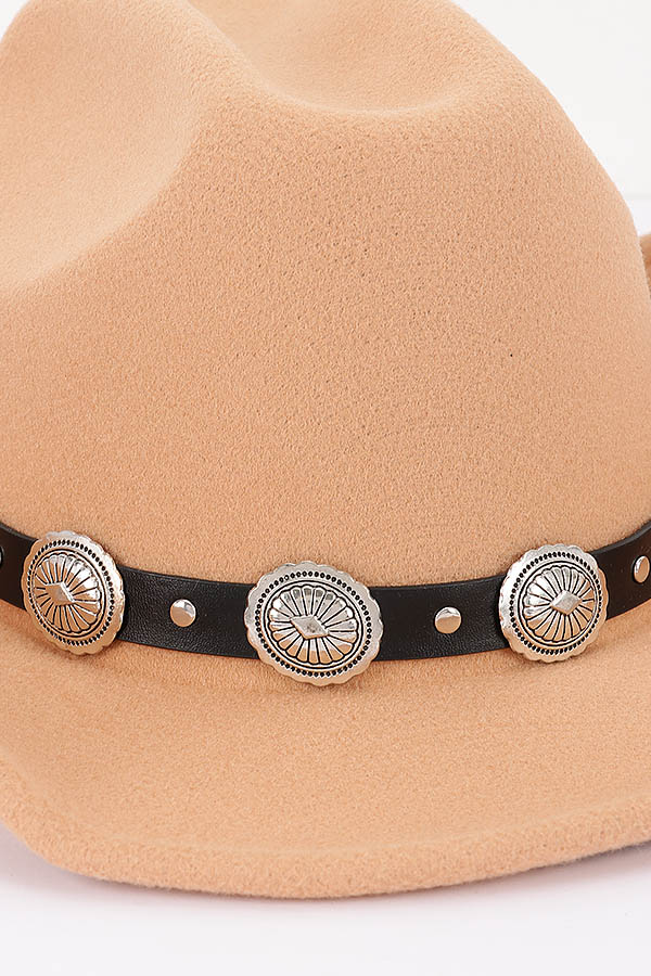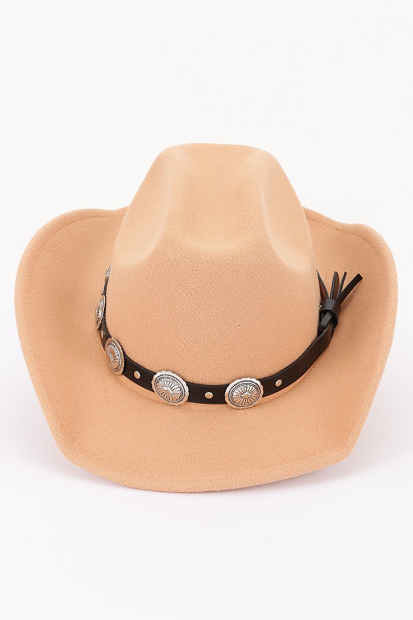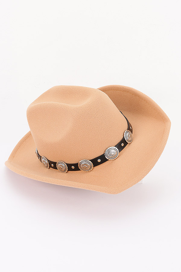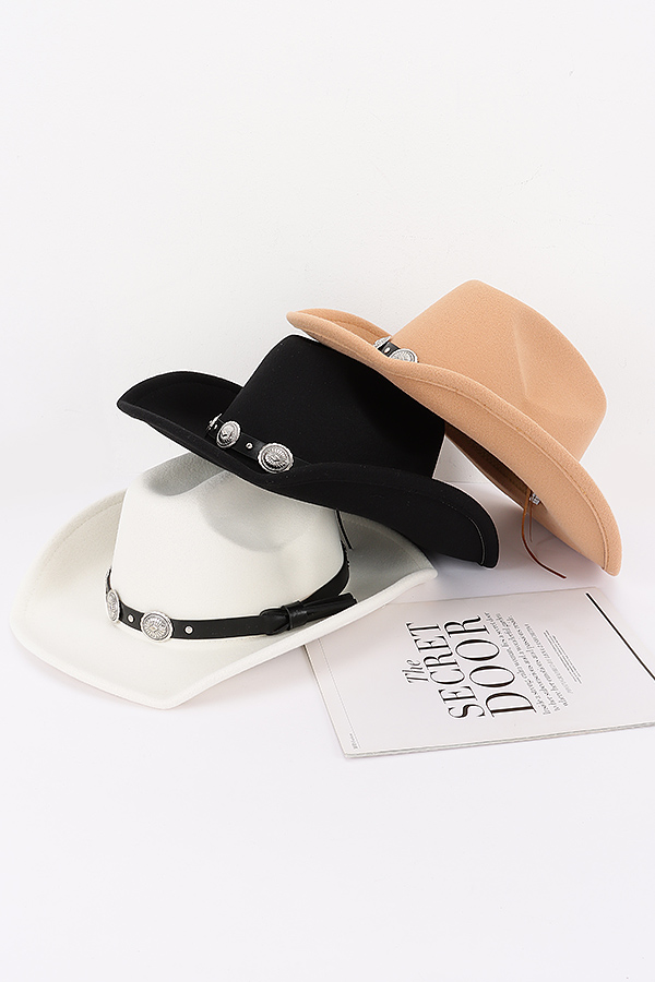 - * This is a Faux Wool Western Fedora Hat from H&D Accessories. It boasts a classic fedora silhouette with a wide brim, which not only gives it a timeless and stylish look but also offers practical sun protection. Around the crown, there's a black band decorated with eye-catching metallic conchos, adding a touch of western charm and uniqueness. This hat is ideal for various occasions. You can wear it to a country - themed party to fully embrace the western vibe, or put it on for a casual weekend outing to add a fashionable edge to your look.