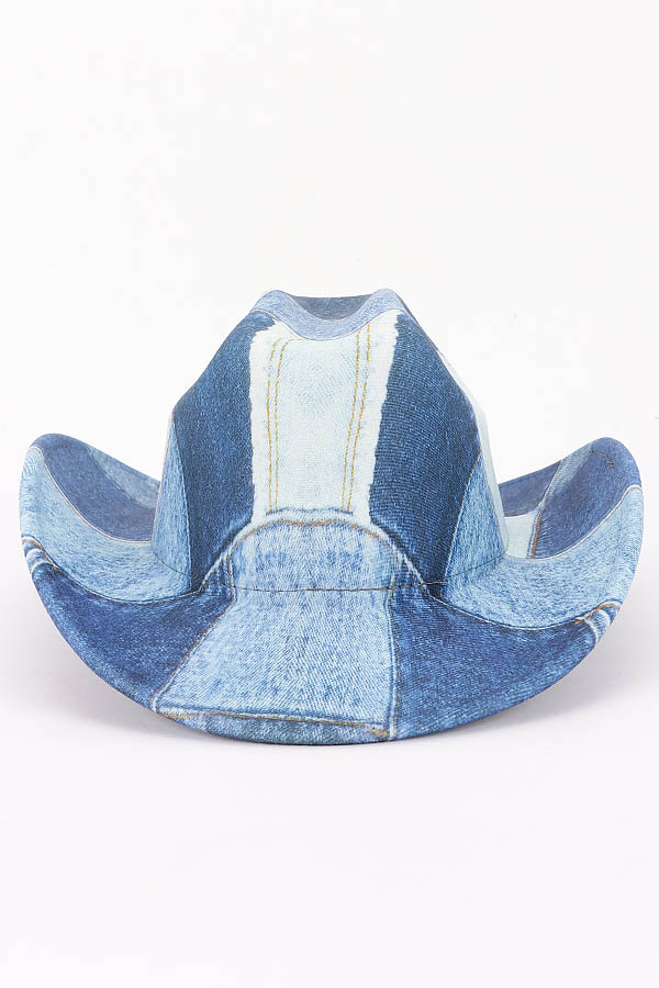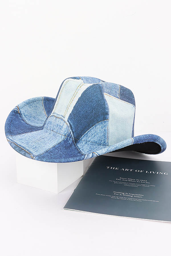 • * This Cotton Denim Print Cowboy Hat from H&D Accessories features a unique patchwork denim design. It has a trendy and western - inspired appearance, giving off a stylish and casual vibe.Ideal for complementing cowboy boots and western - style outfits at country music festivals, rodeos, or western - themed parties.