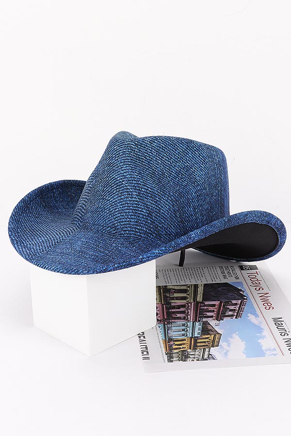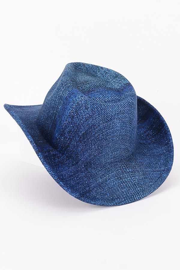 • * This Cotton Denim Print Cowboy Hat from H&D Accessories features a textured denim design with a classic cowboy hat shape. It has a stylish and western - inspired appearance, giving off a casual and trendy vibe.Ideal for complementing cowboy boots and western - style outfits at country music festivals, rodeos, or western - themed parties.