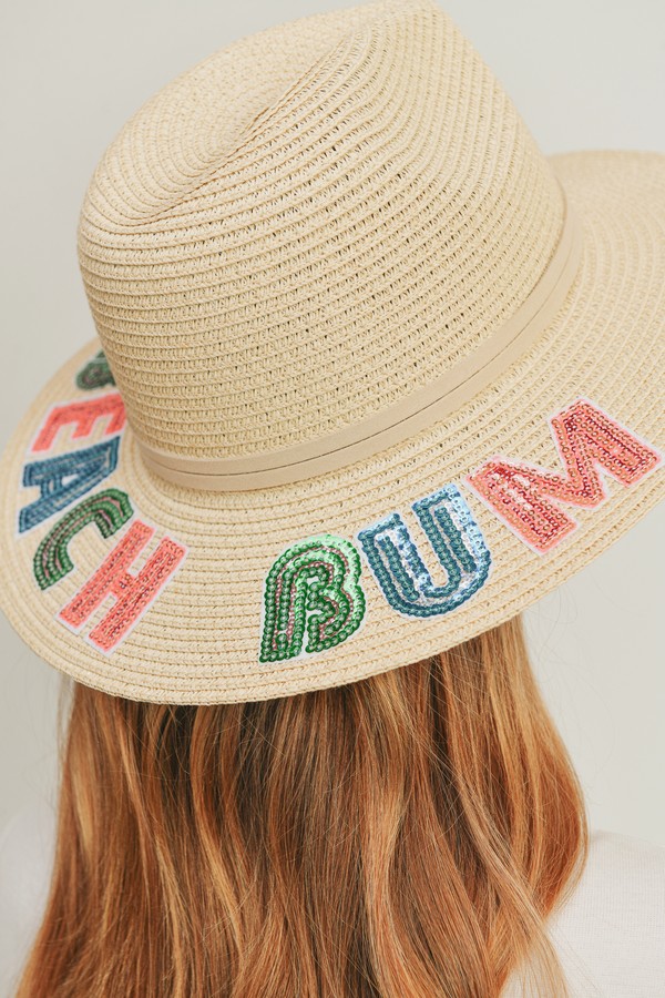 - * SEQUIN LETTER BEACH BUM PANAMA HAT