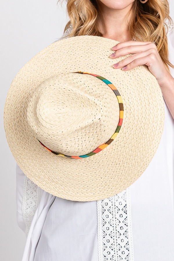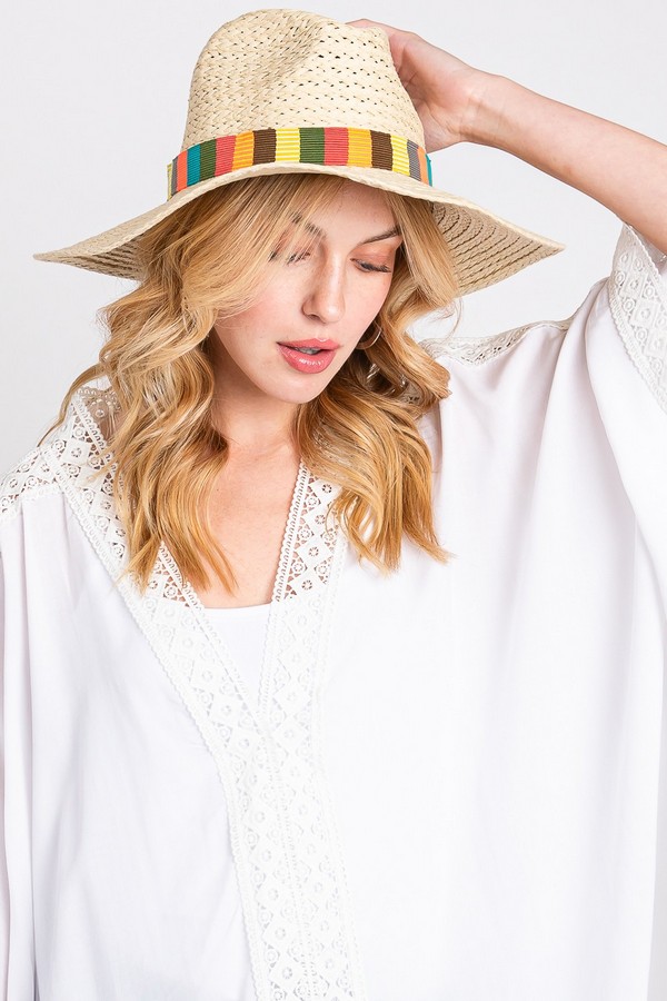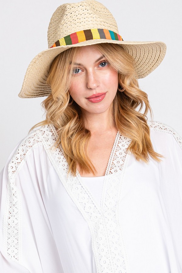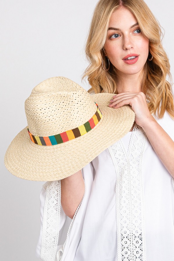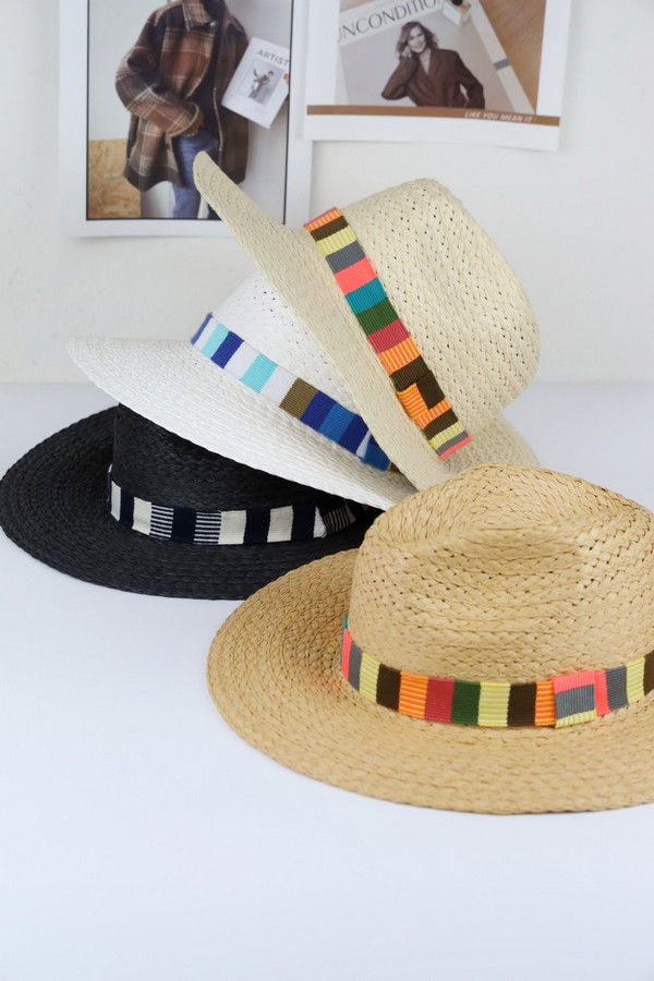 - * MULTI COLOR STRIPE BAND STRAW HAT