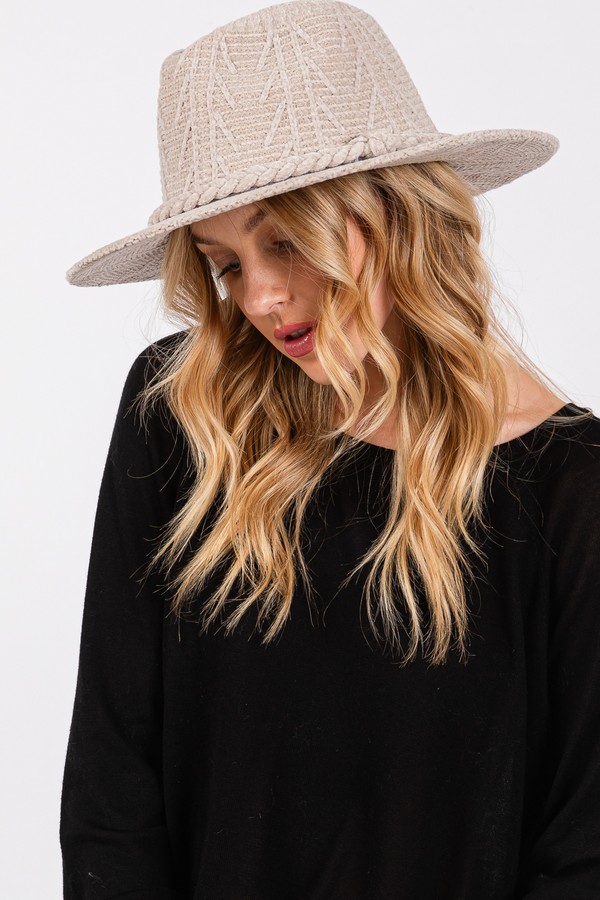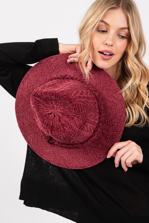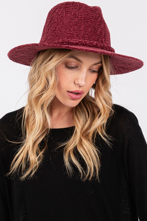 - * Introducing the "Chenille Pattern Fedora With Braided Band" from H&D Accessories - the perfect way to elevate your style with a hat that's both fashionable and functional.