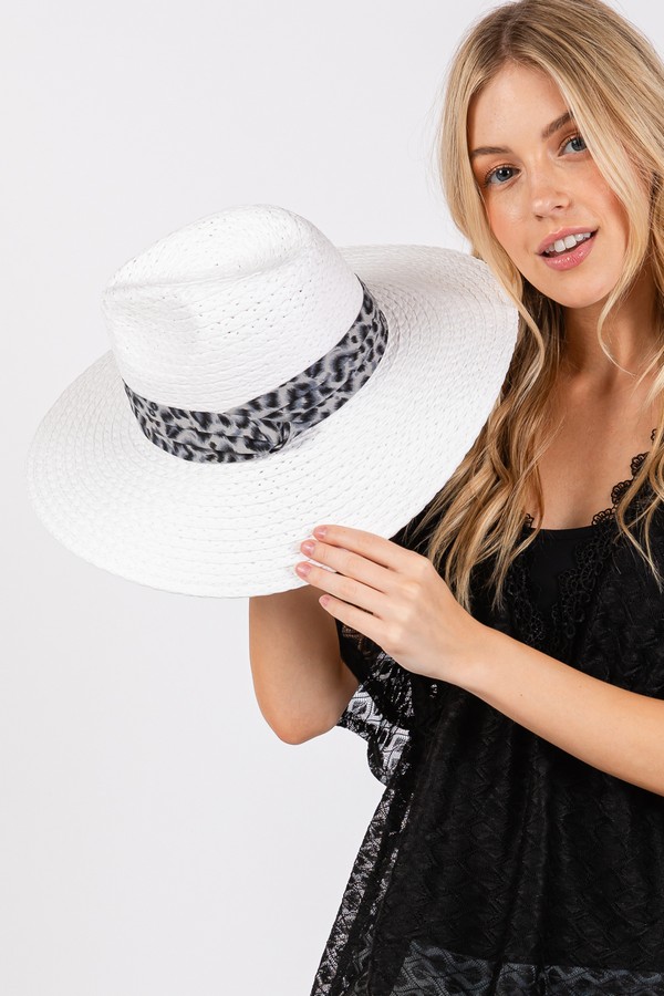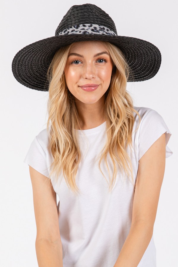 - * LEOPARD BAND STRAW SUN HAT.
